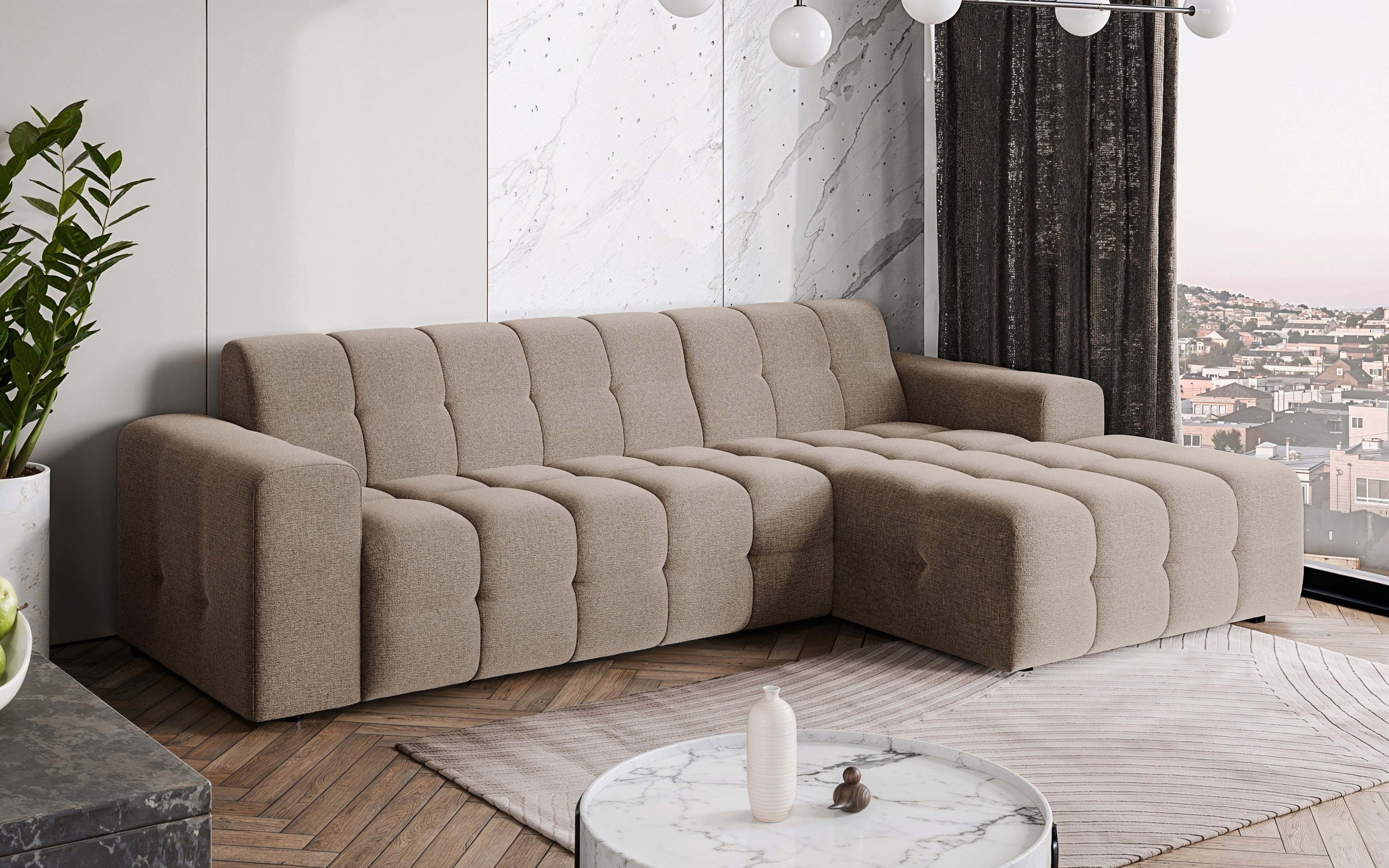 Hoekbank Kora 264cm bruin chenille rechts