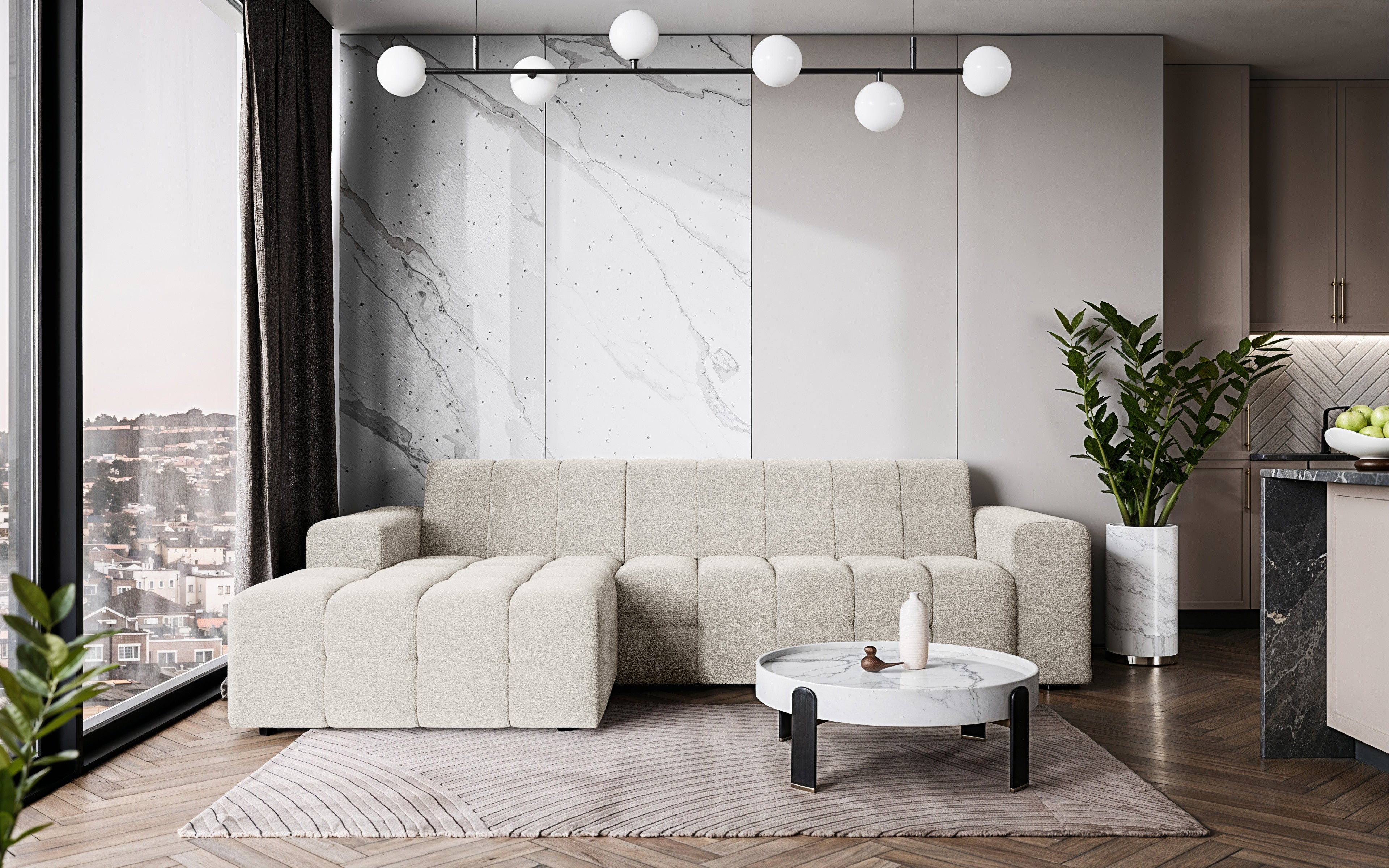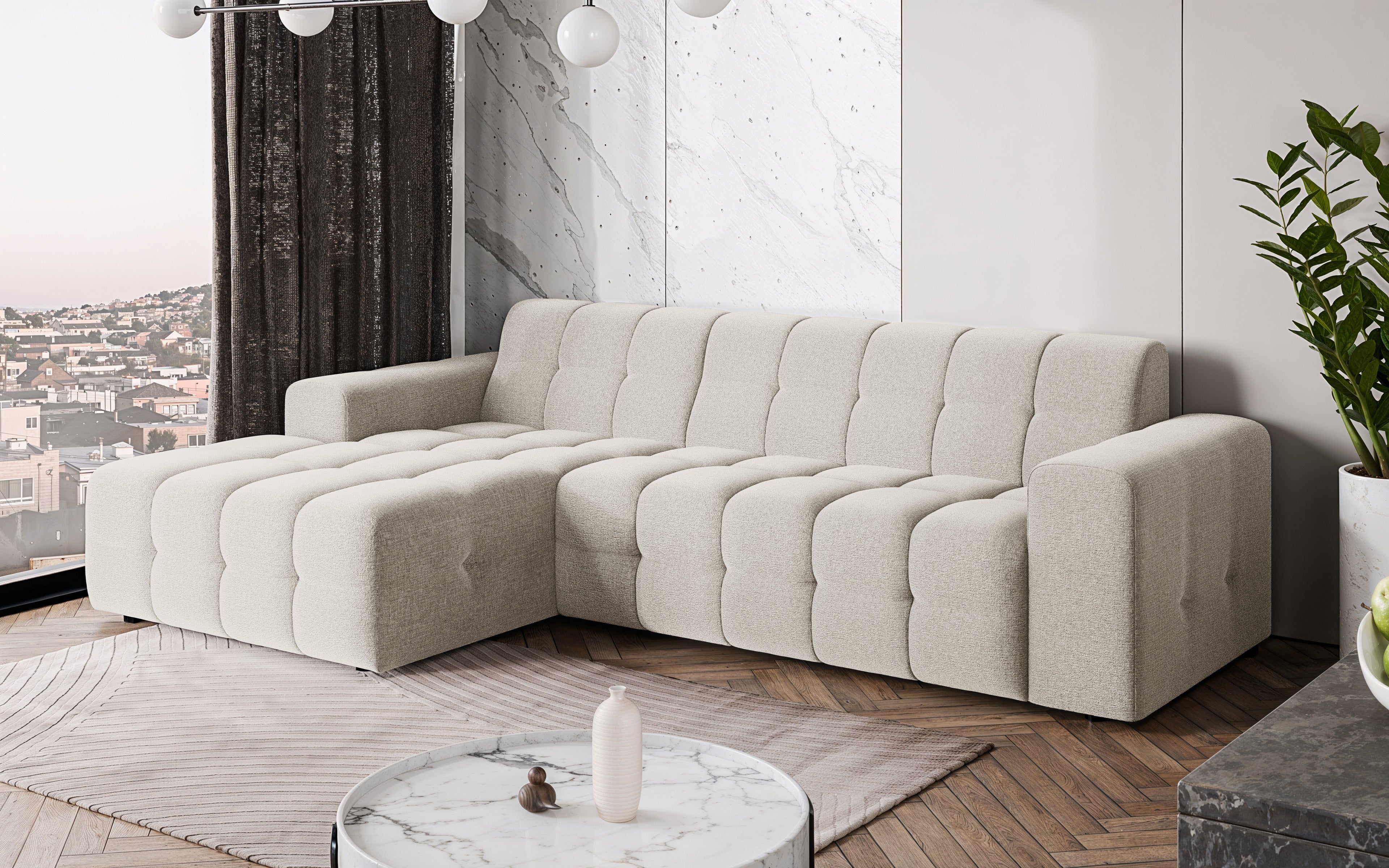 Hoekbank Kora 264cm gebroken wit chenille links
