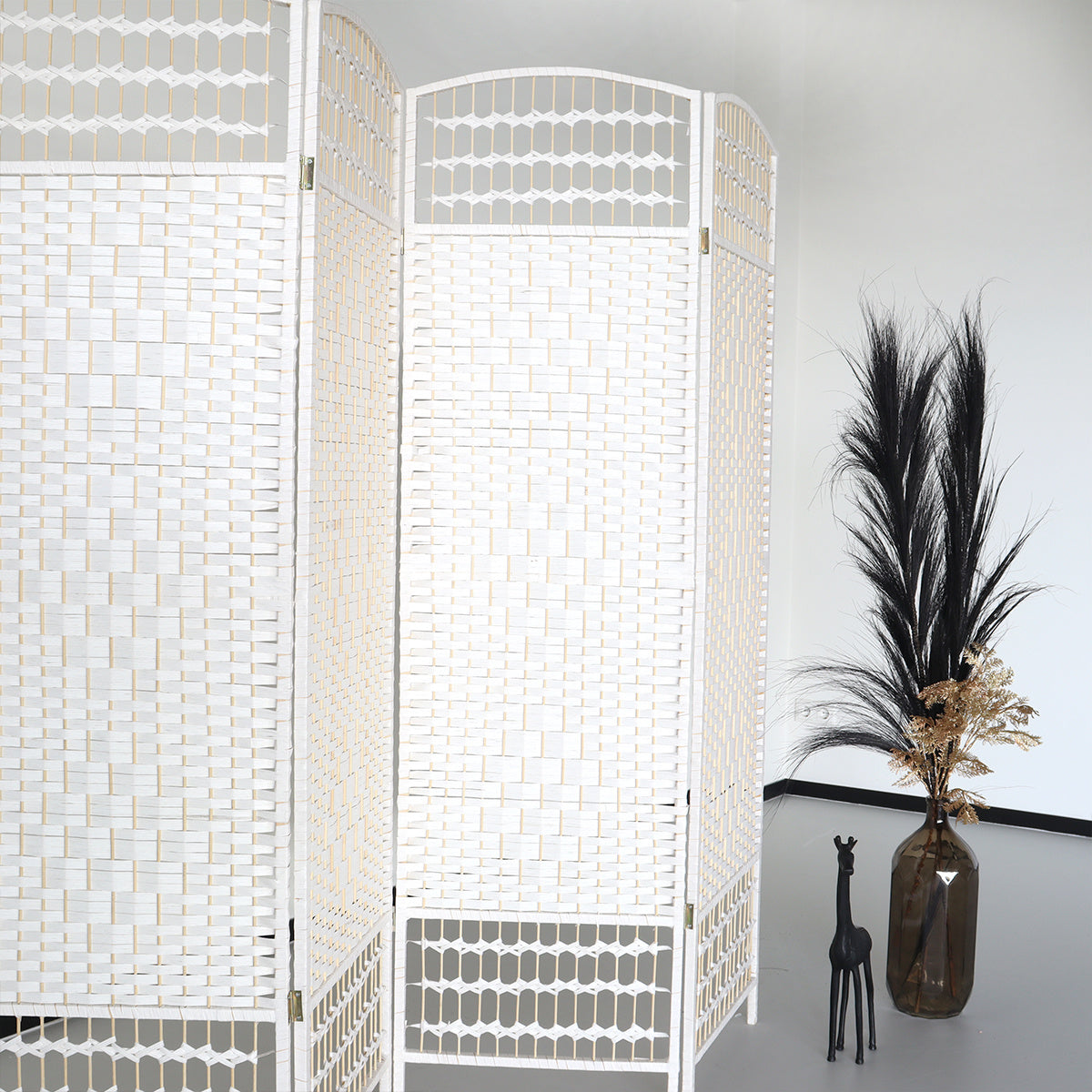 Dit kamerscherm heeft rieten vlechtwerk met aan de bovenkant en aan de onderkant een open structuur. Het kamerscherm heeft houten latjes waarop het kamerscherm steunt! Het kamerscherm is ook perfect om zakelijk te gebruiken. Zet deze bijvoorbeeld in je massage- of beauty salon wanneer je niet veel mogelijkheden hebt maar je klanten toch enige privacy wilt bieden!