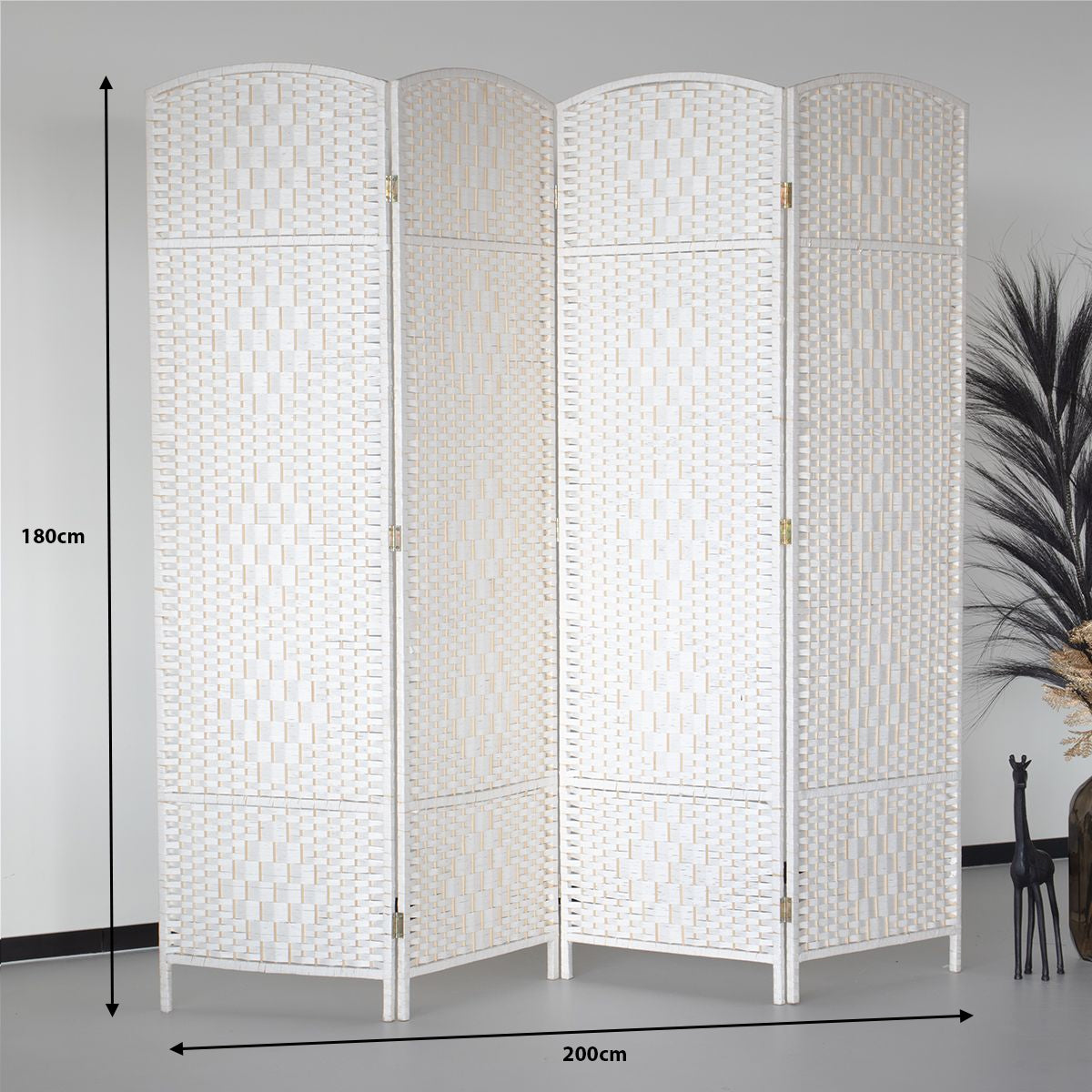 Dit kamerscherm heeft rieten vlechtwerk en houten latjes waarop het kamerscherm steunt! Het kamerscherm is ook perfect om zakelijk te gebruiken. Zet deze bijvoorbeeld in je massage- of beauty salon wanneer je niet veel mogelijkheden hebt maar je klanten toch enige privacy wilt bieden!