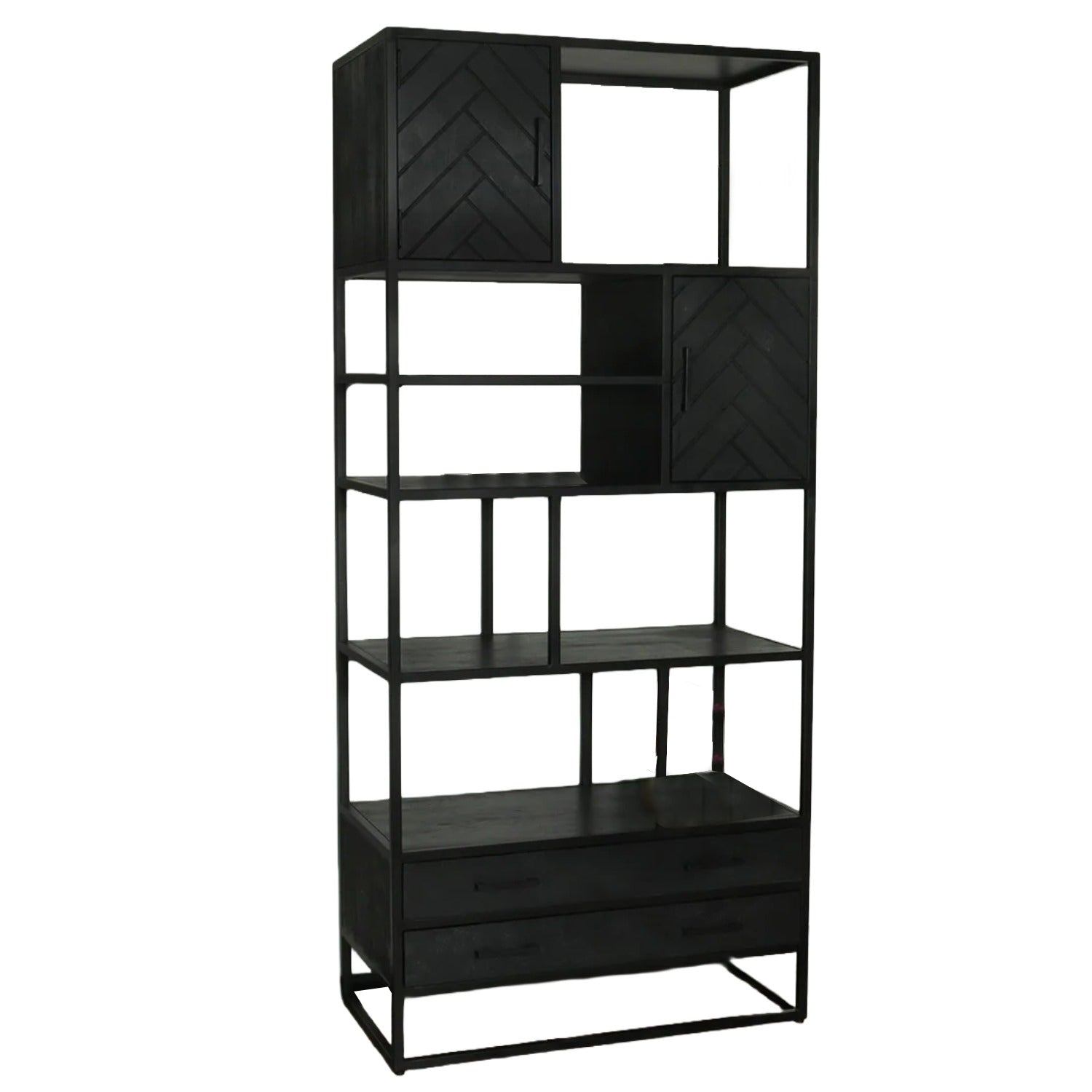 Visgraat vakkenkast zwart mangohout 200cm Rio