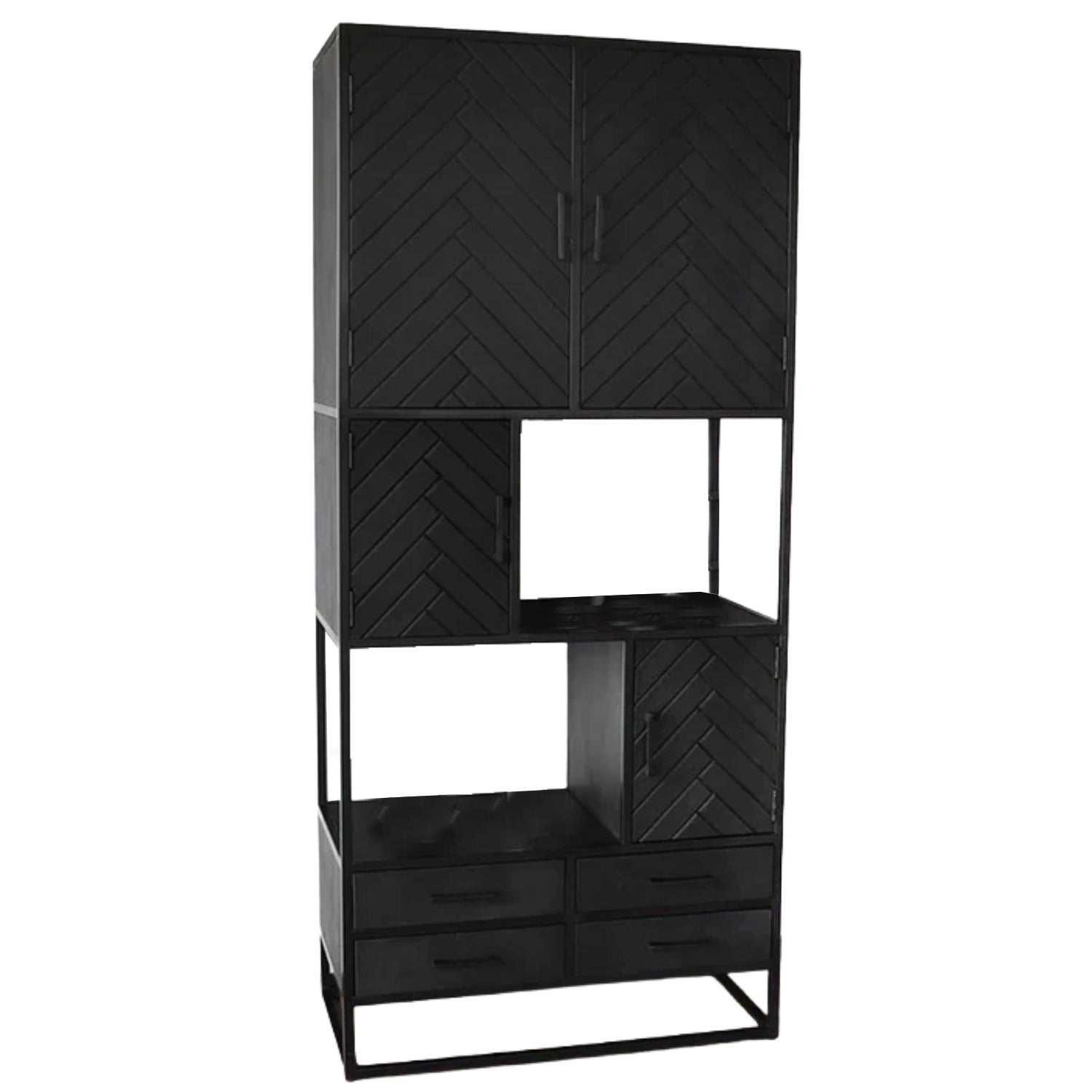 Visgraat vakkenkast zwart mangohout 200cm Blako