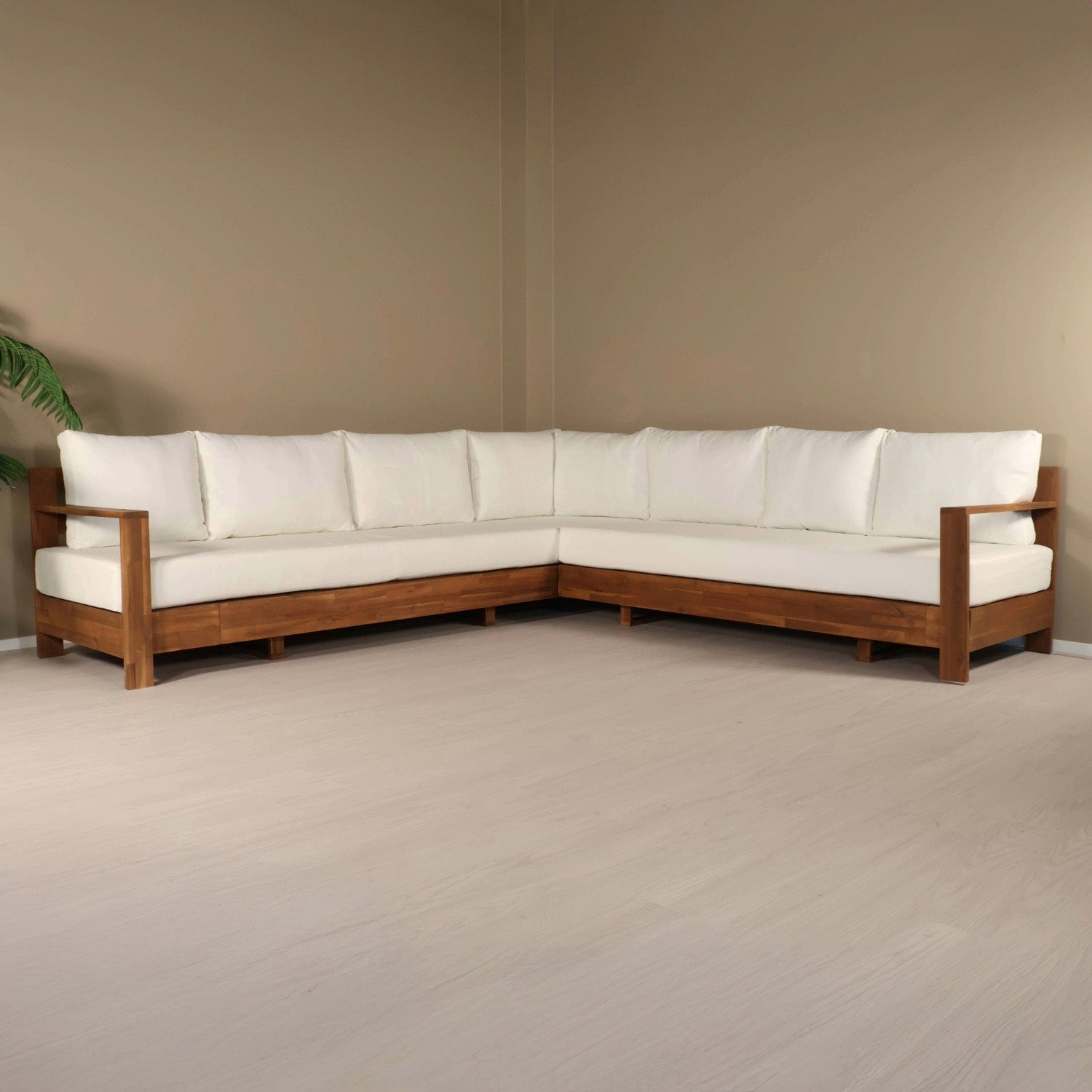 Met deze royale loungeset creëer je een luxe en comfortabel zitgedeelte in jouw tuin, balkon of terras. De ruime opstelling biedt voldoende plek om te ontspannen, bij te praten of te genieten van lange zomeravonden. De warme, natuurlijke uitstraling van het materiaal geeft jouw buitenruimte direct meer sfeer. Een perfecte keuze voor iedereen die op zoek is naar comfort, kwaliteit en tijdloze stijl.