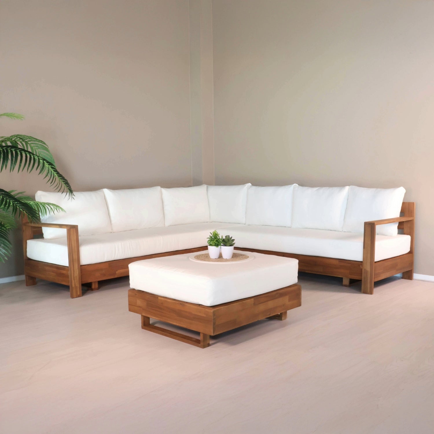 - Gemaakt van duurzaam acaciahout met zachte, comfortabele kussens