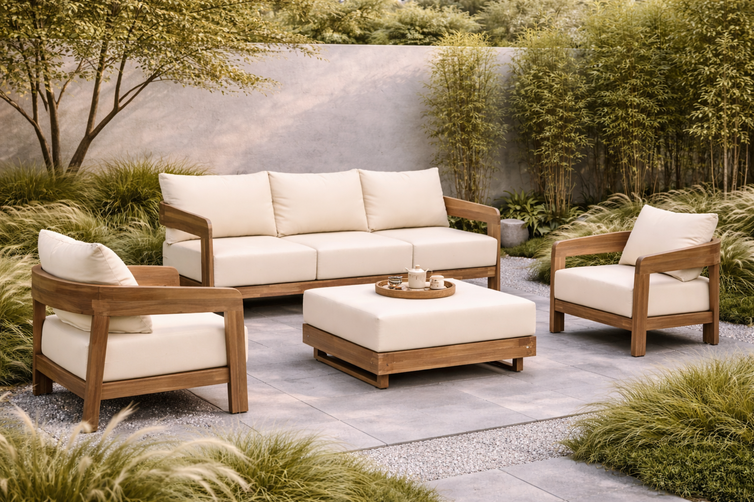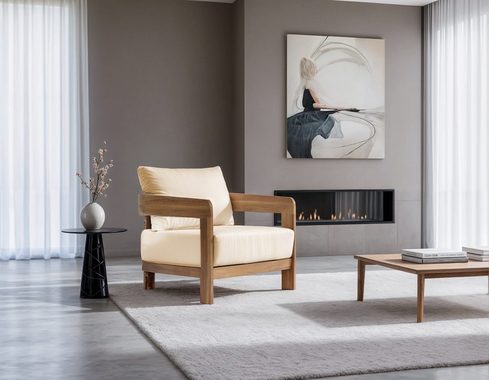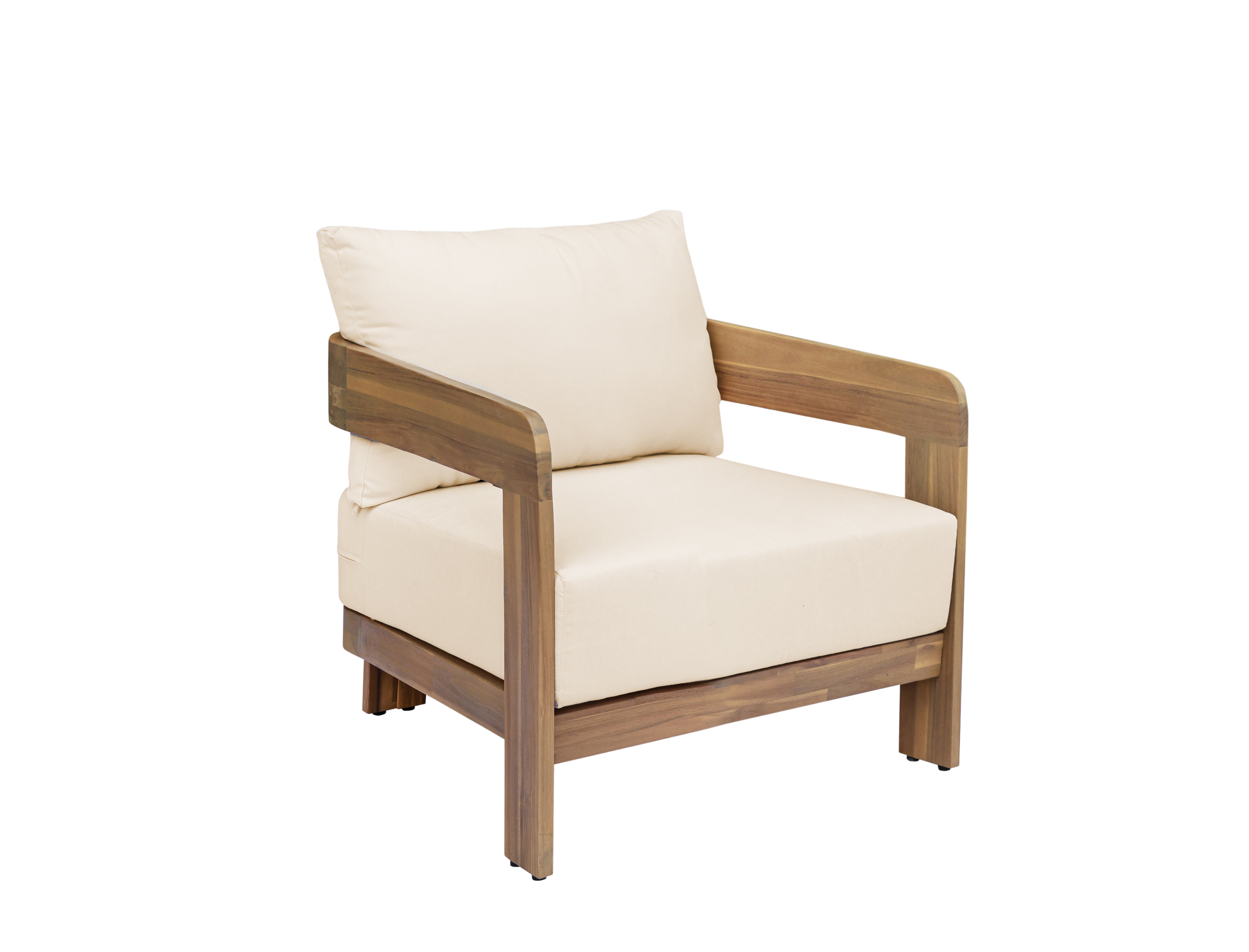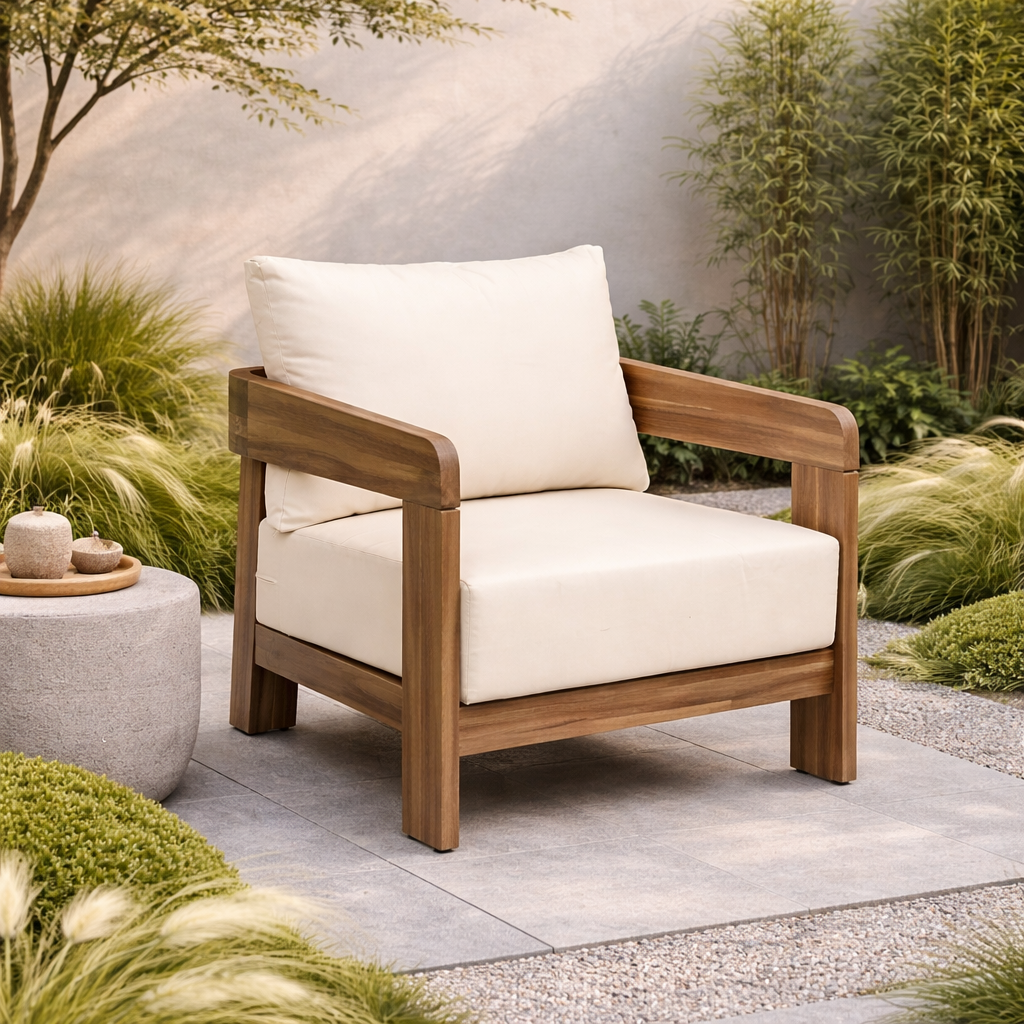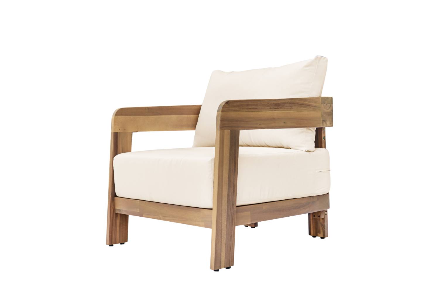 - Duurzaam acaciahout met comfortabel polyester kussen