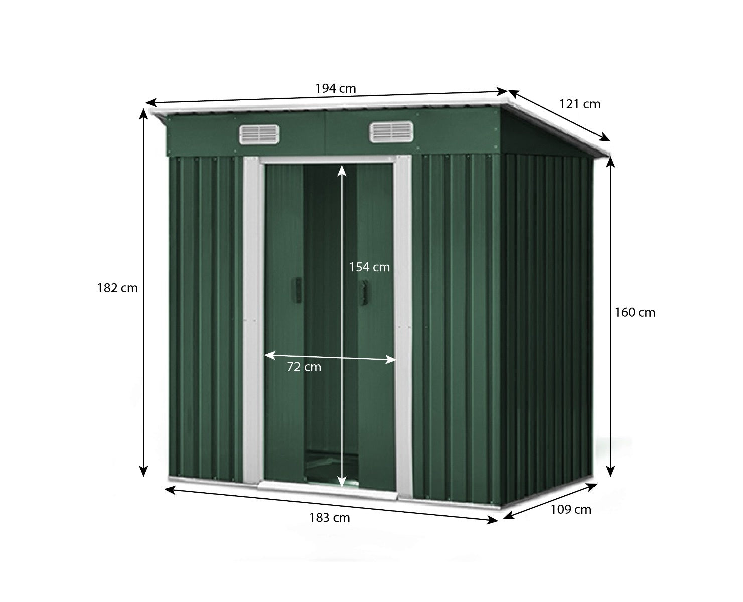 Deze berging is uitermate geschikt om diverse spullen in op te bergen zoals bijvoorbeeld je gereedschap, grasmaaier, bladblazer of andere spullen voor in de tuin! Het tuinhuisje is voorzien van twee grote schuifdeuren. De totale afmeting van deze deuren is 154,0cm hoog en 72,0cm breed, deze deuren zorgen ervoor dat je gemakkelijk je tuinhuis in en uit kan!