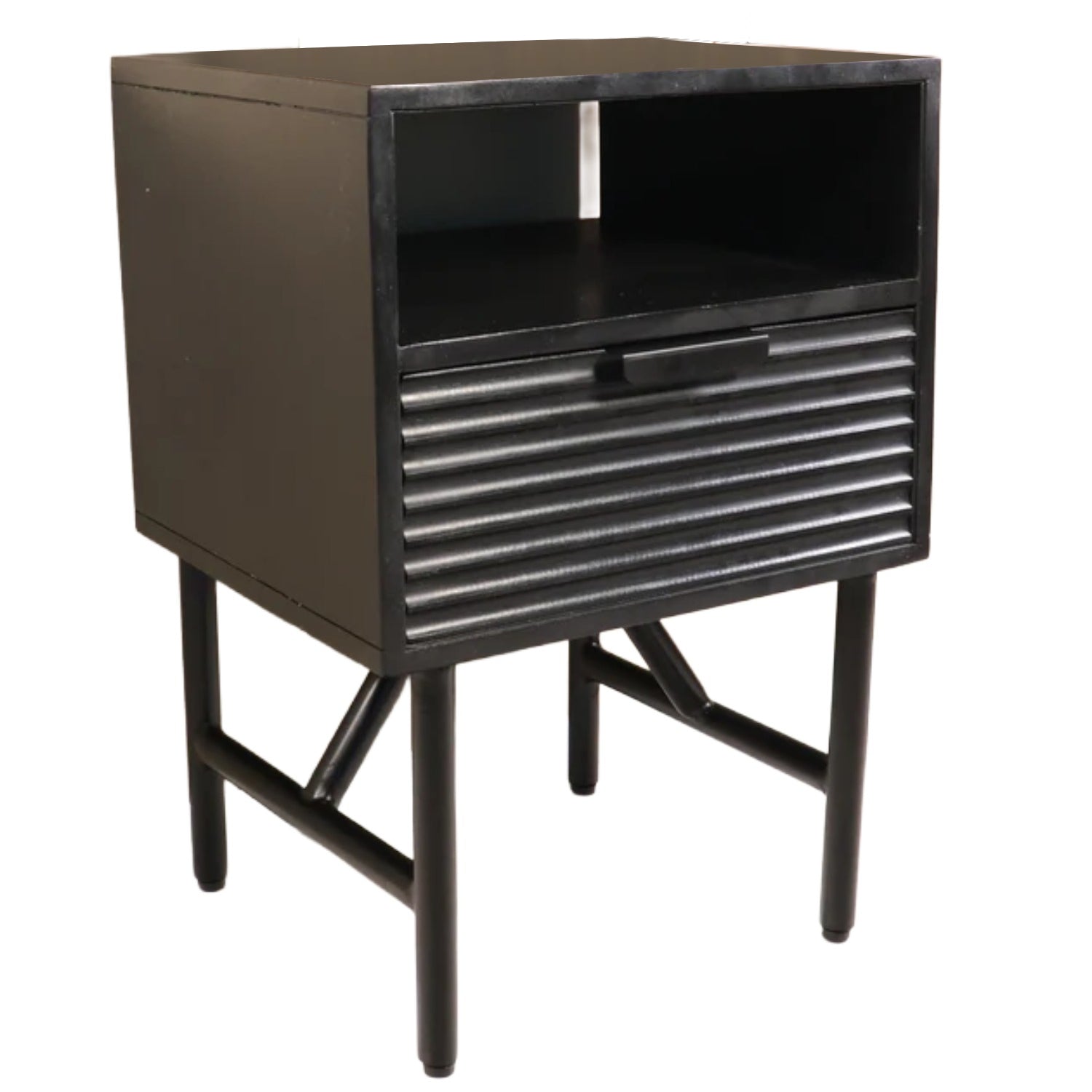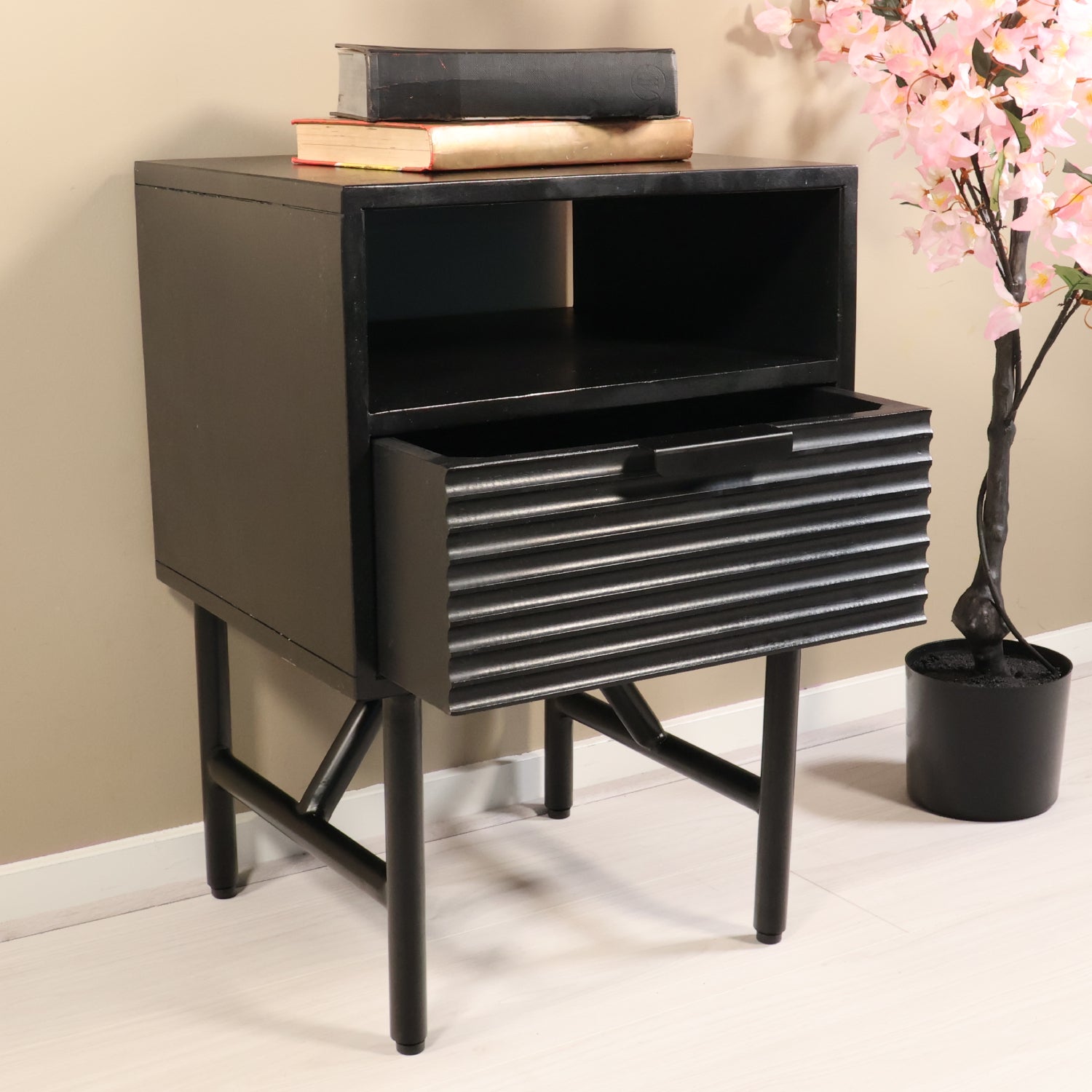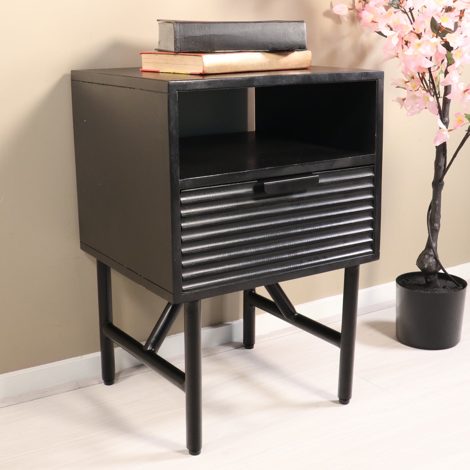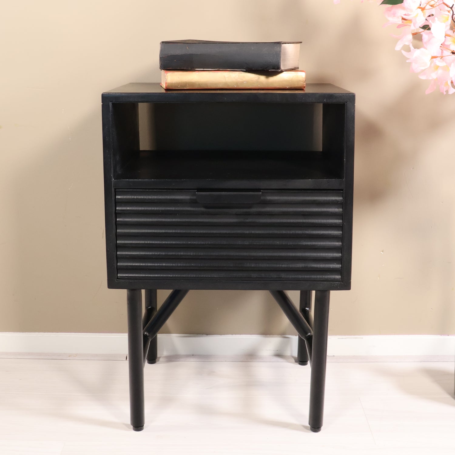 Nachtkastje zwart mangohout Avy zonder achterwand