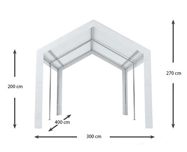 - Afmeting: Lengte: 4,00m Breedte: 3,00m Hoogte: 2,70m