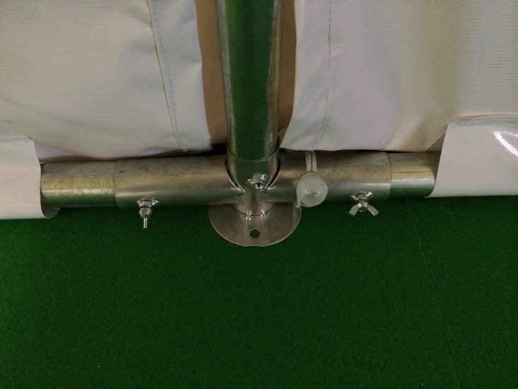 Deze partytent heeft een gegalvaniseerd frame met dikke en stevige buizen. De buizen hebben een diameter van 38,0mm, deze buizen zijn 1,2mm dik. De koppelstukken hebben een diameter van 42,0mm en zijn 1,5mm dik. Je schuift de buizen gemakkelijk in de koppelstukken en bevestigt deze extra stevig met de bijgeleverde vleugelmoeren! Het grondframe zorgt voor extra stabiliteit. Ook kun je de wanden om het grondframe bevestigen wat ervoor zorgt dat deze niet zullen klapperen bij harde wind!