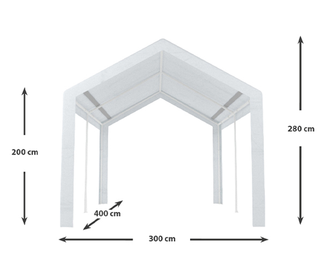 - Afmeting: Lengte: 4,00m Breedte: 3,00m Hoogte: 2,80m