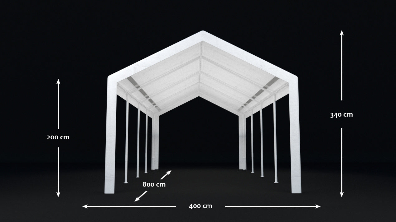 - Afmeting: Lengte: 8,00m Breedte: 4,00m Hoogte: 3,40m