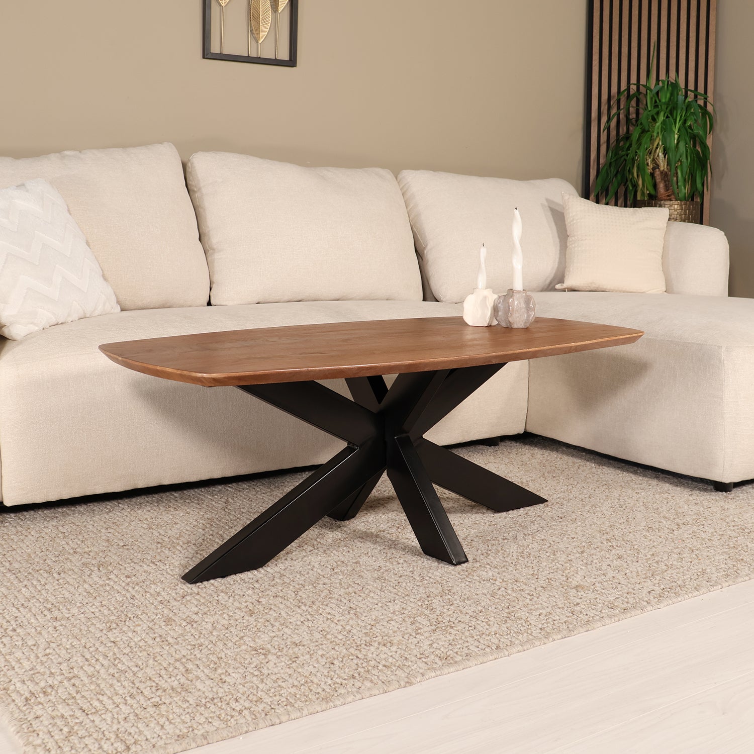 Salontafel deens ovaal mangohout 120cm walnoot Livy