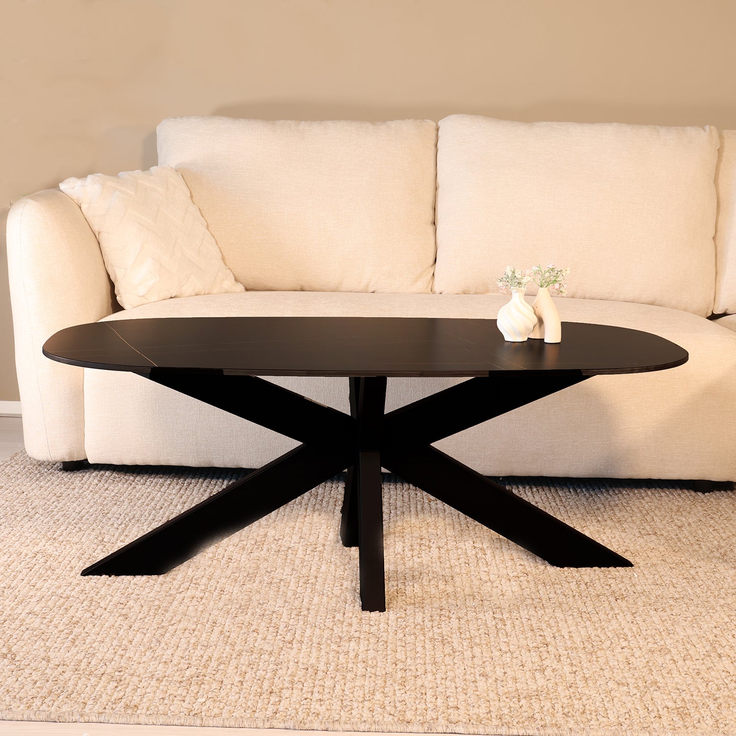 Salontafel deens ovaal marmerlook zwart steen 120cm Elif