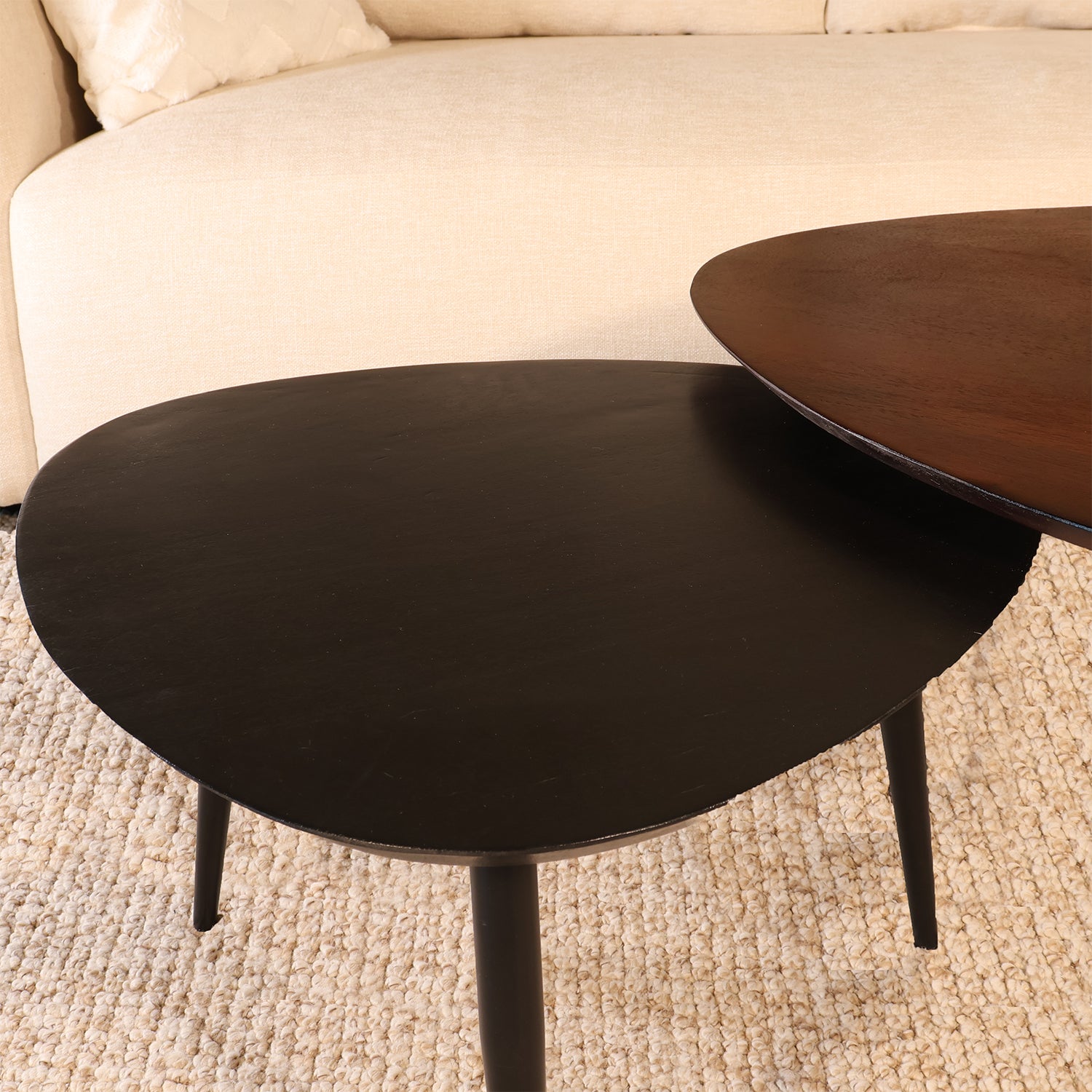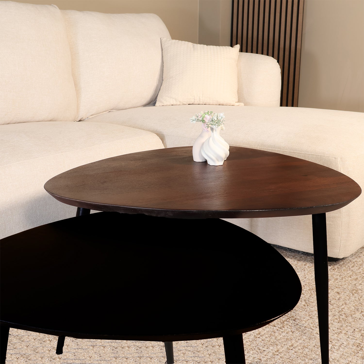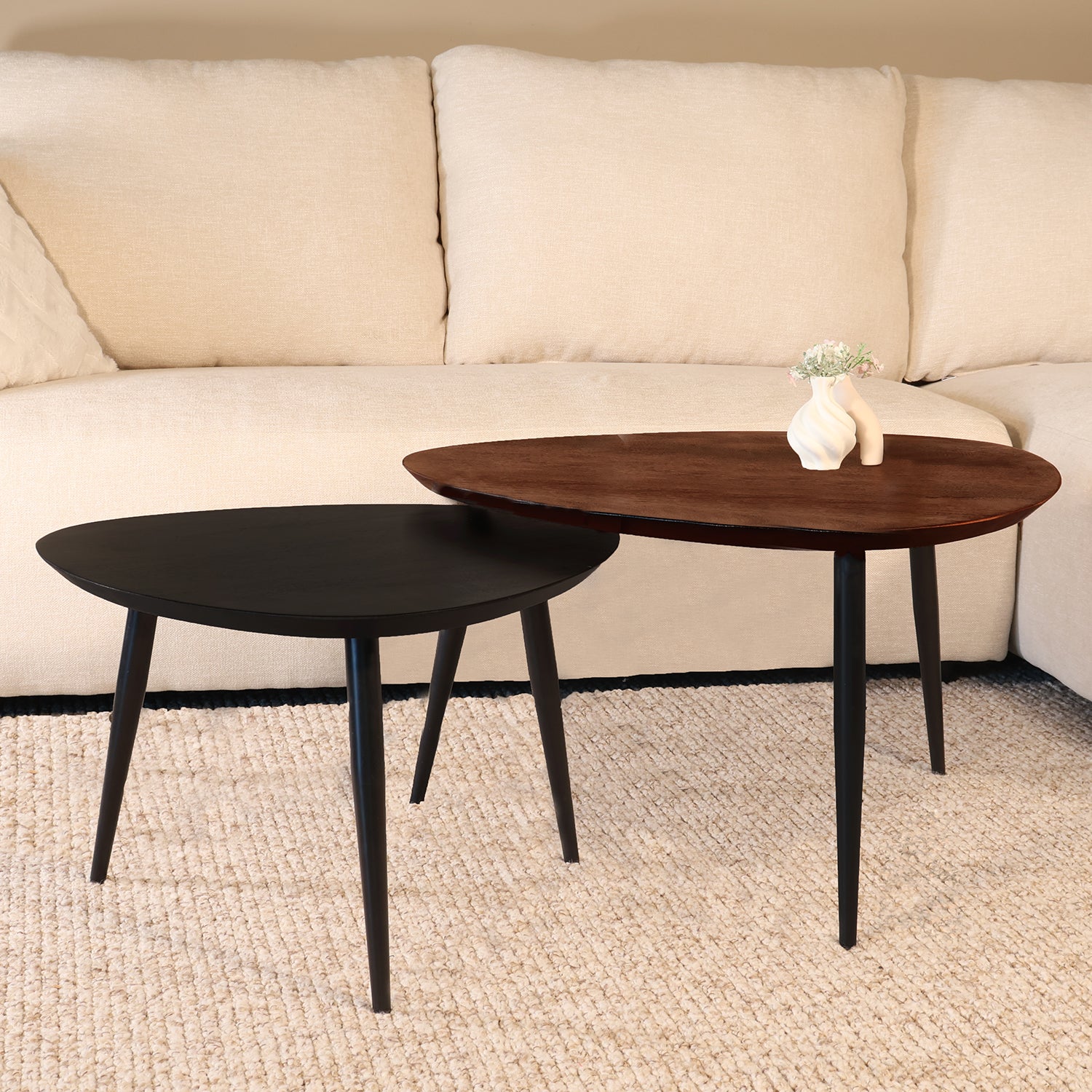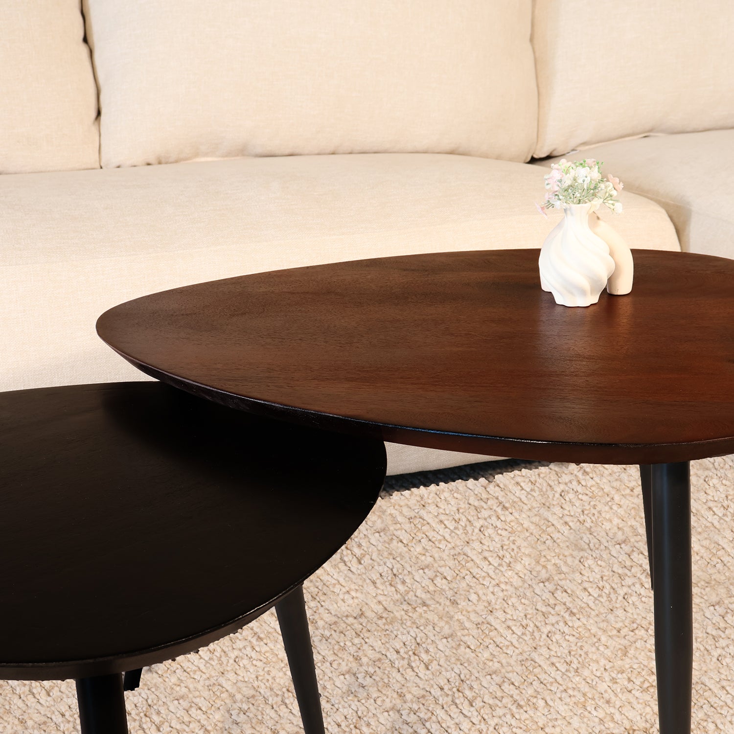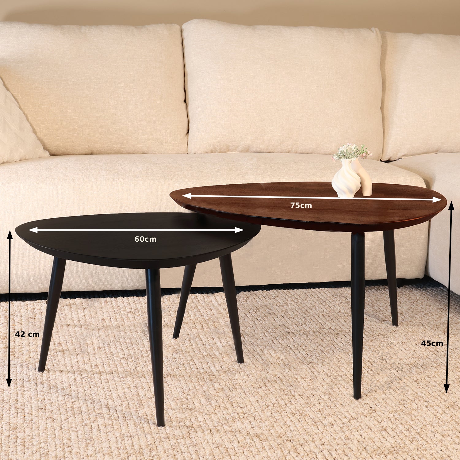 Salontafel organisch 2delig bruin en zwart mangohout Leyla