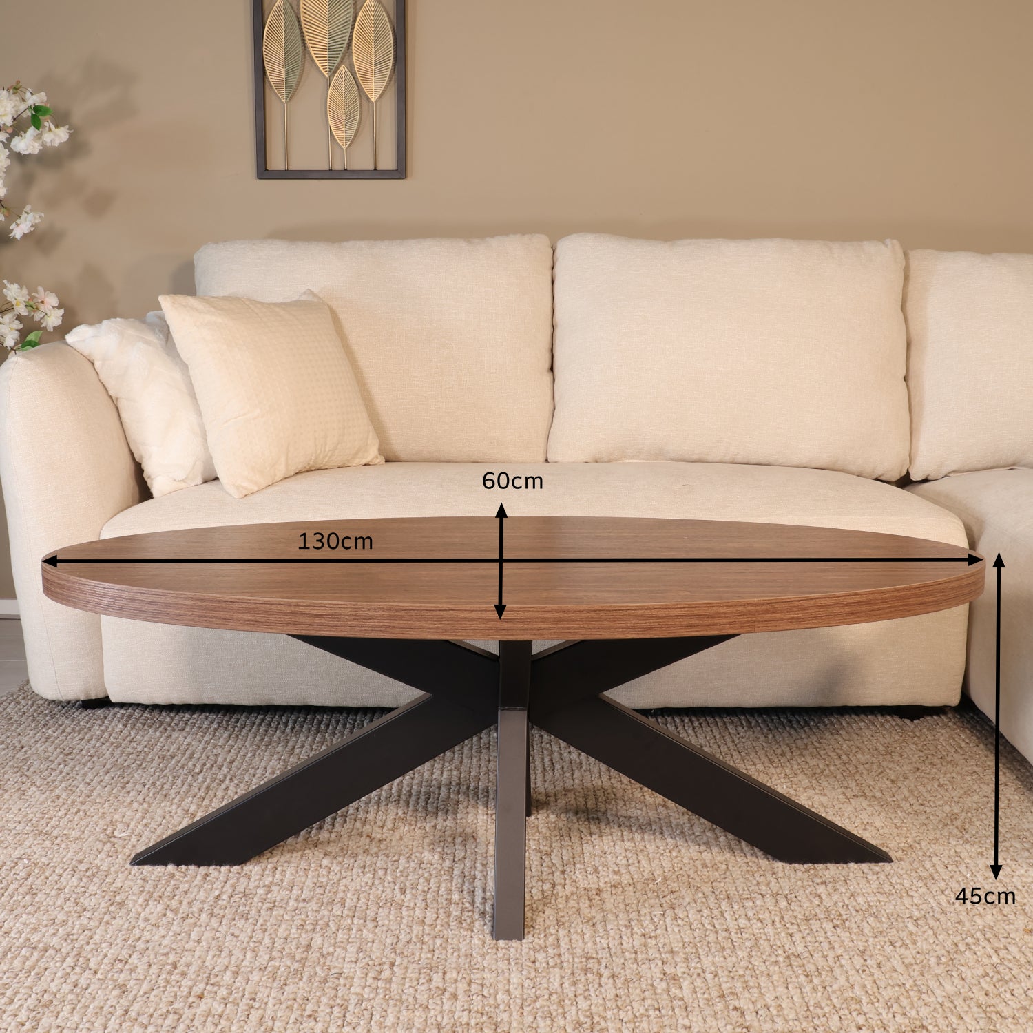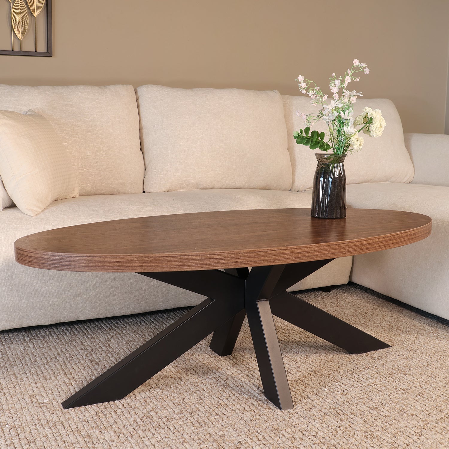 Deze ovale salontafel Denzel is een stoere aanwinst in industriële stijl voor jouw zithoek! Het melamine blad maakt deze tafel geschikt voor gezinnen met (jonge) kinderen, starters die nog aan het klussen zijn, horeca gelegenheden.. eigenlijk kan iedereen profijt hebben van deze tafel! Gebruik deze tafel als salontafel, bijzettafel of side table met een mooie plant erop!