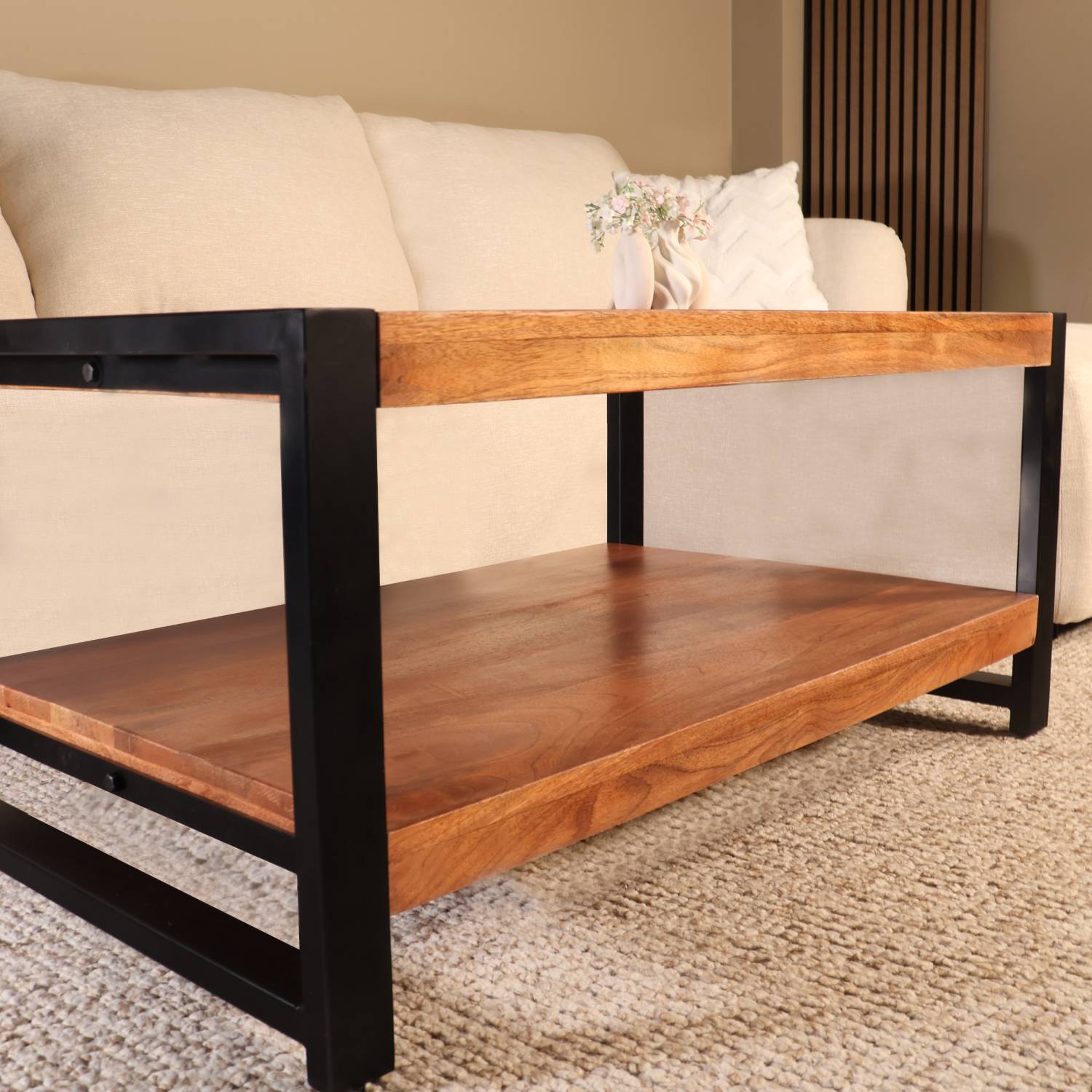 Deze salontafel heeft een mangohouten blad en een zwart metalen frame. Door de stoere uitstraling en het robuuste frame kun je de salontafel ook als bijzettafel gebruiken!