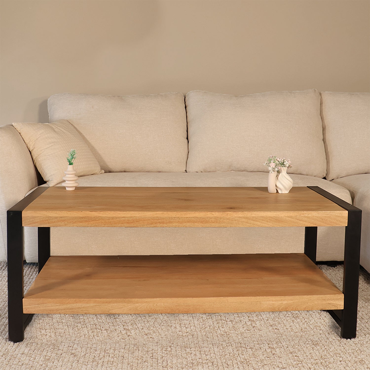 Deze salontafel heeft een mangohouten blad en een zwart metalen frame. Door de stoere uitstraling en het robuuste frame kun je de salontafel ook als bijzettafel gebruiken!