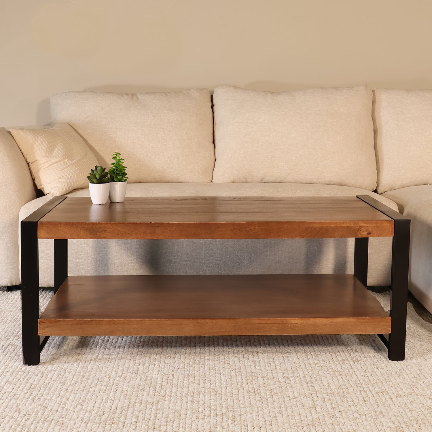 Deze salontafel heeft een mangohouten blad en een zwart metalen frame. Door de stoere uitstraling en het robuuste frame kun je de salontafel ook als bijzettafel gebruiken!