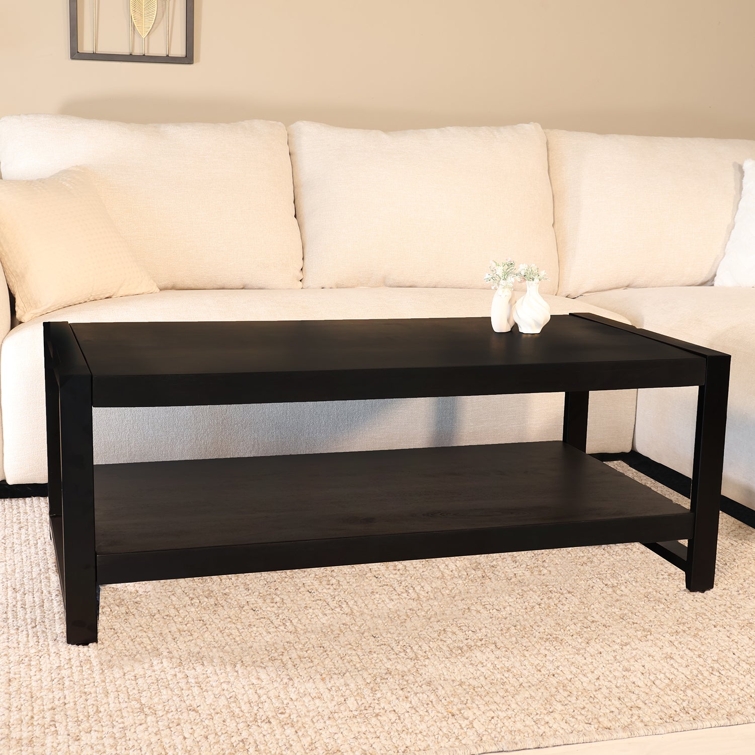 Salontafel rechthoekig zwart mangohout 120cm Lotus