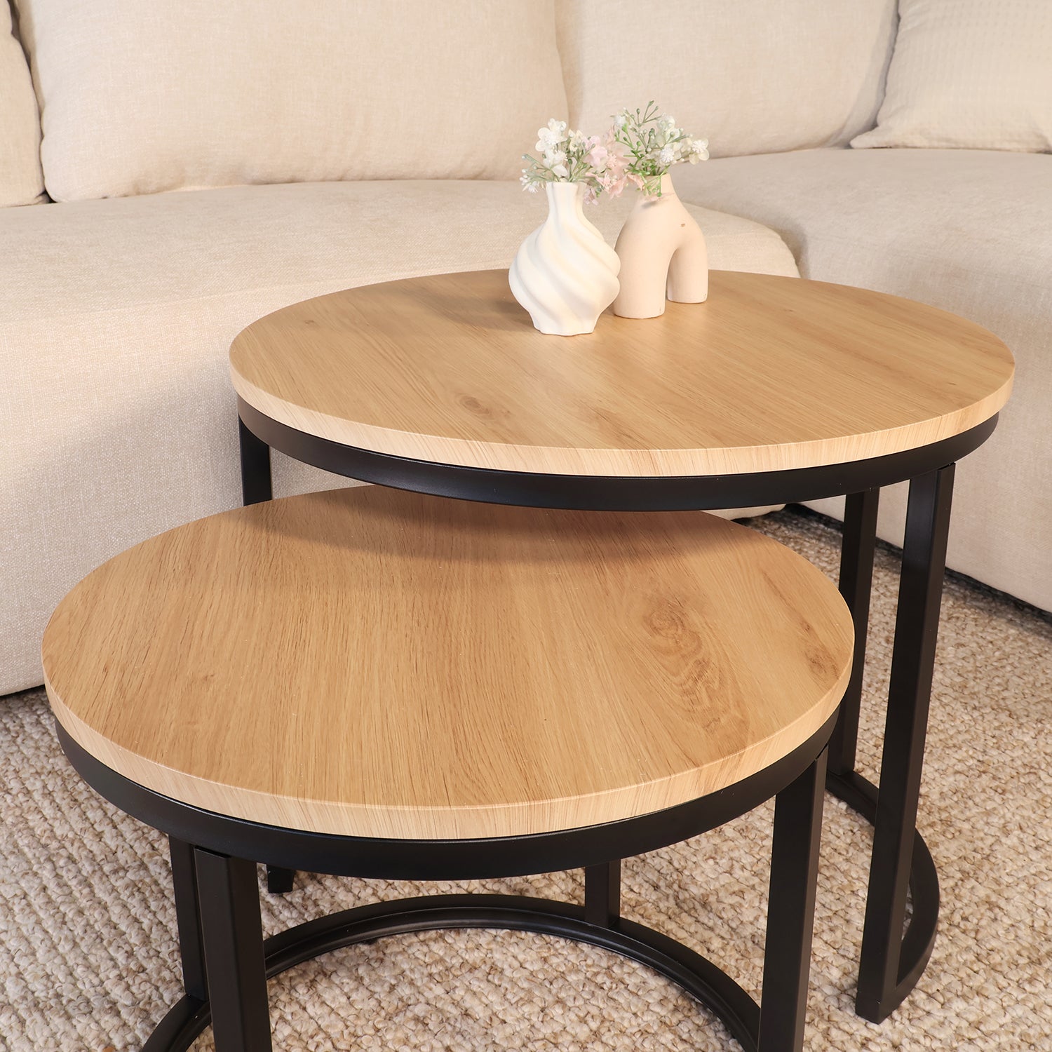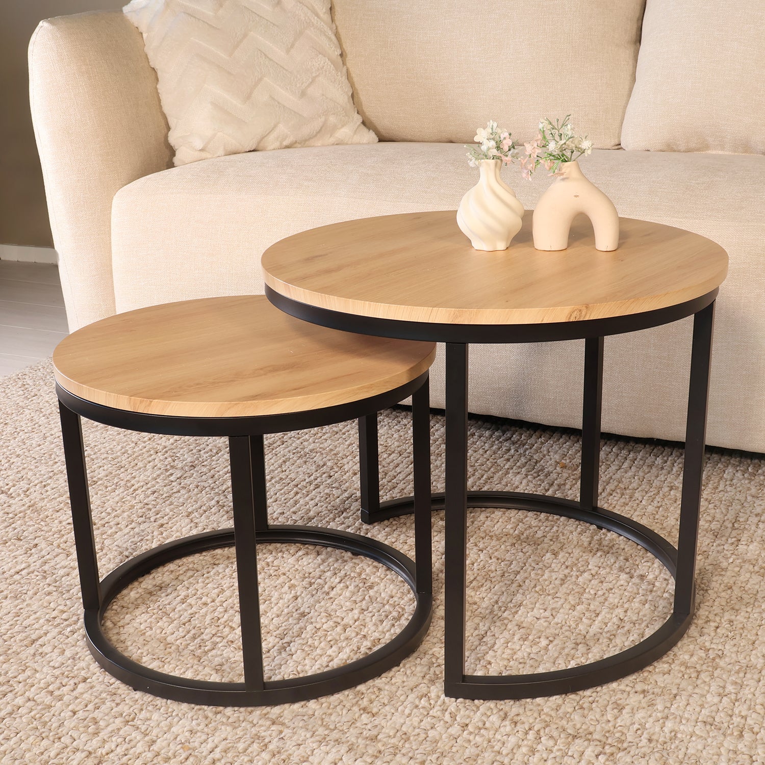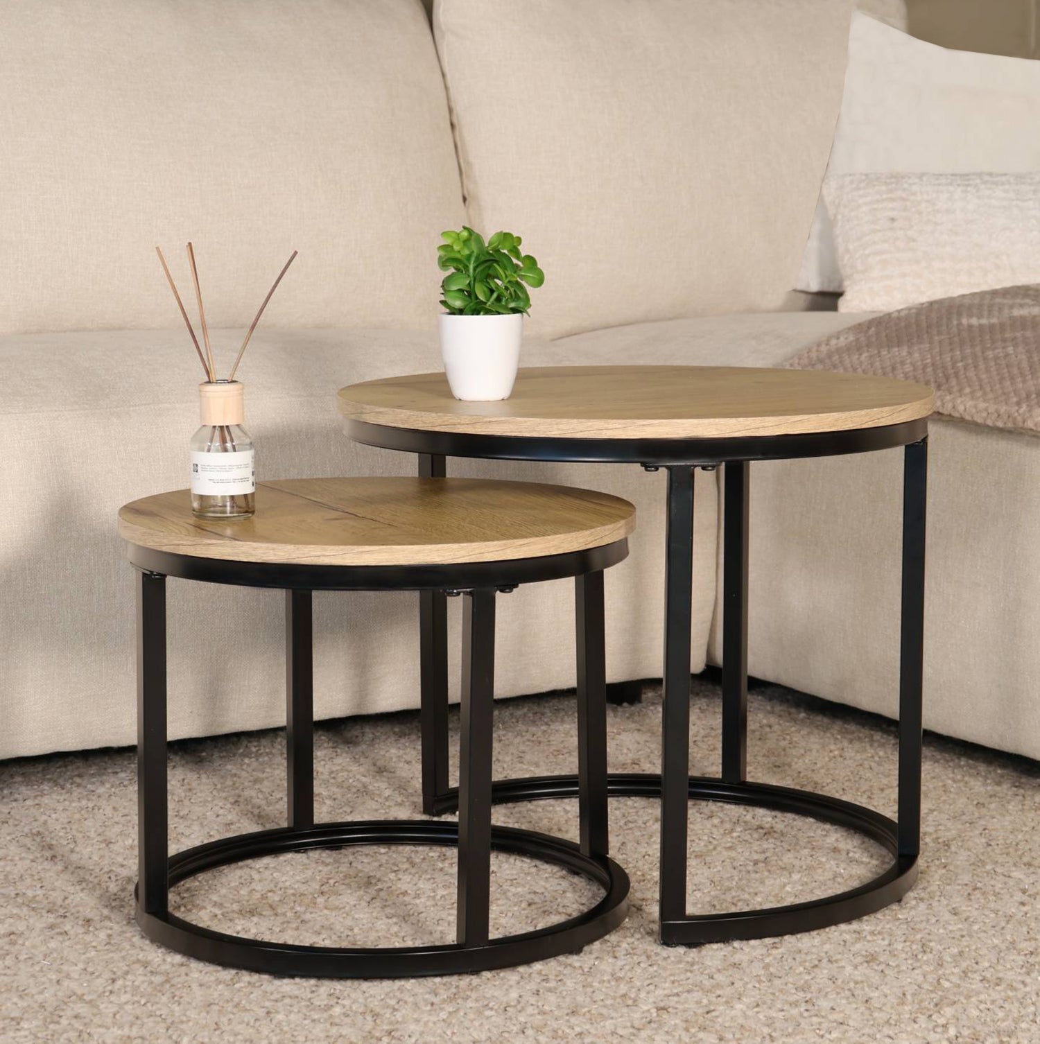 Salontafel rond 2delig lichtbruin MDF Rutger