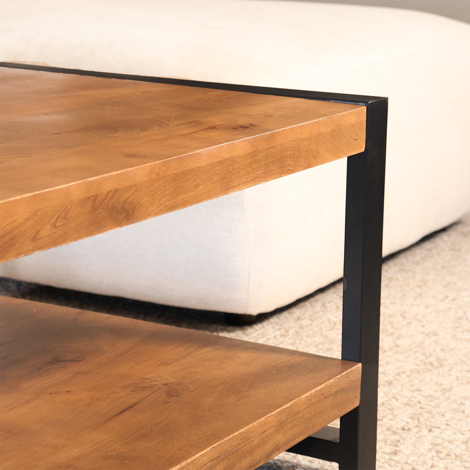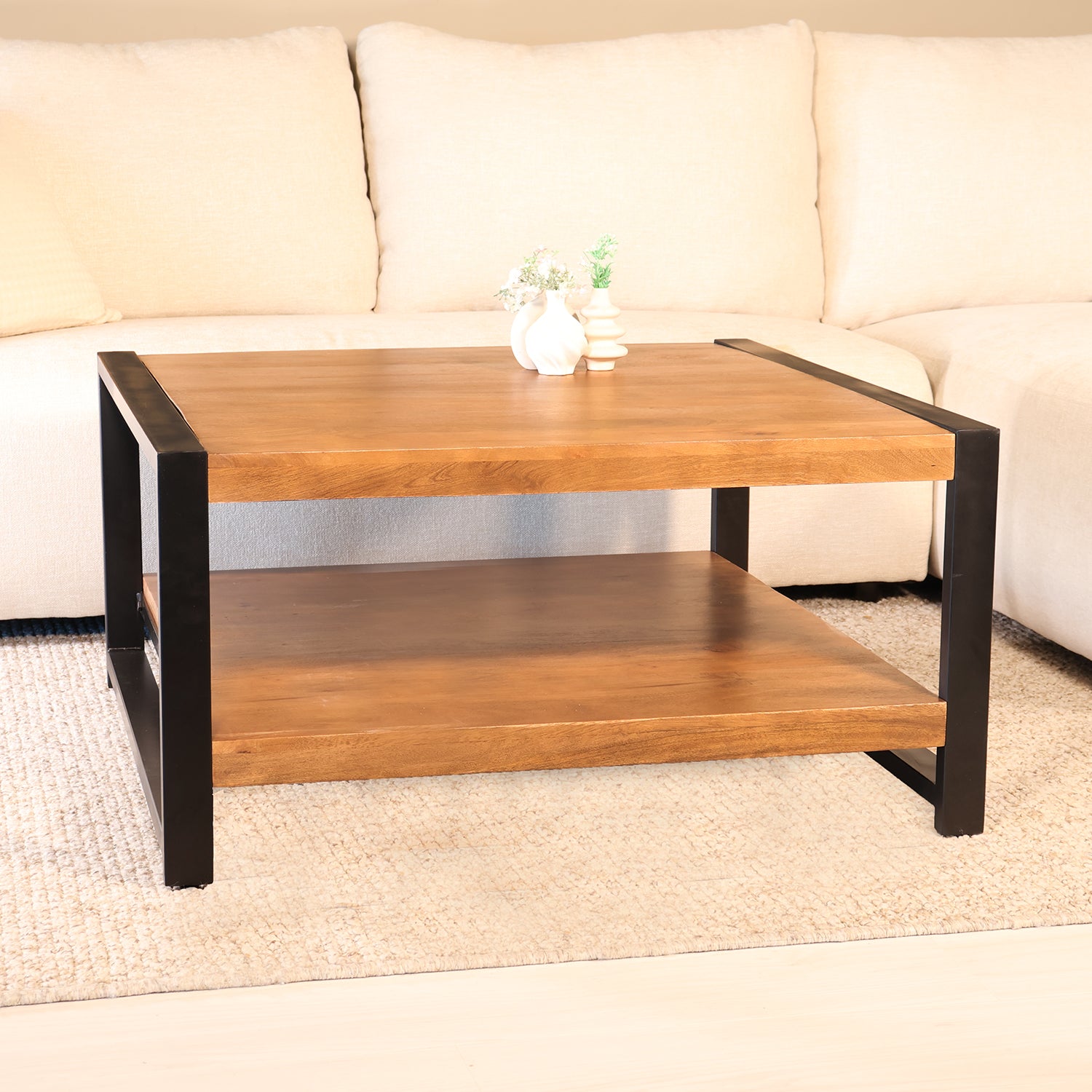 Deze salon tafel heeft een mangohouten blad en een zwart metalen frame. Door de stoere uitstraling en het robuuste frame kun je de salontafel ook als bijzettafel gebruiken!