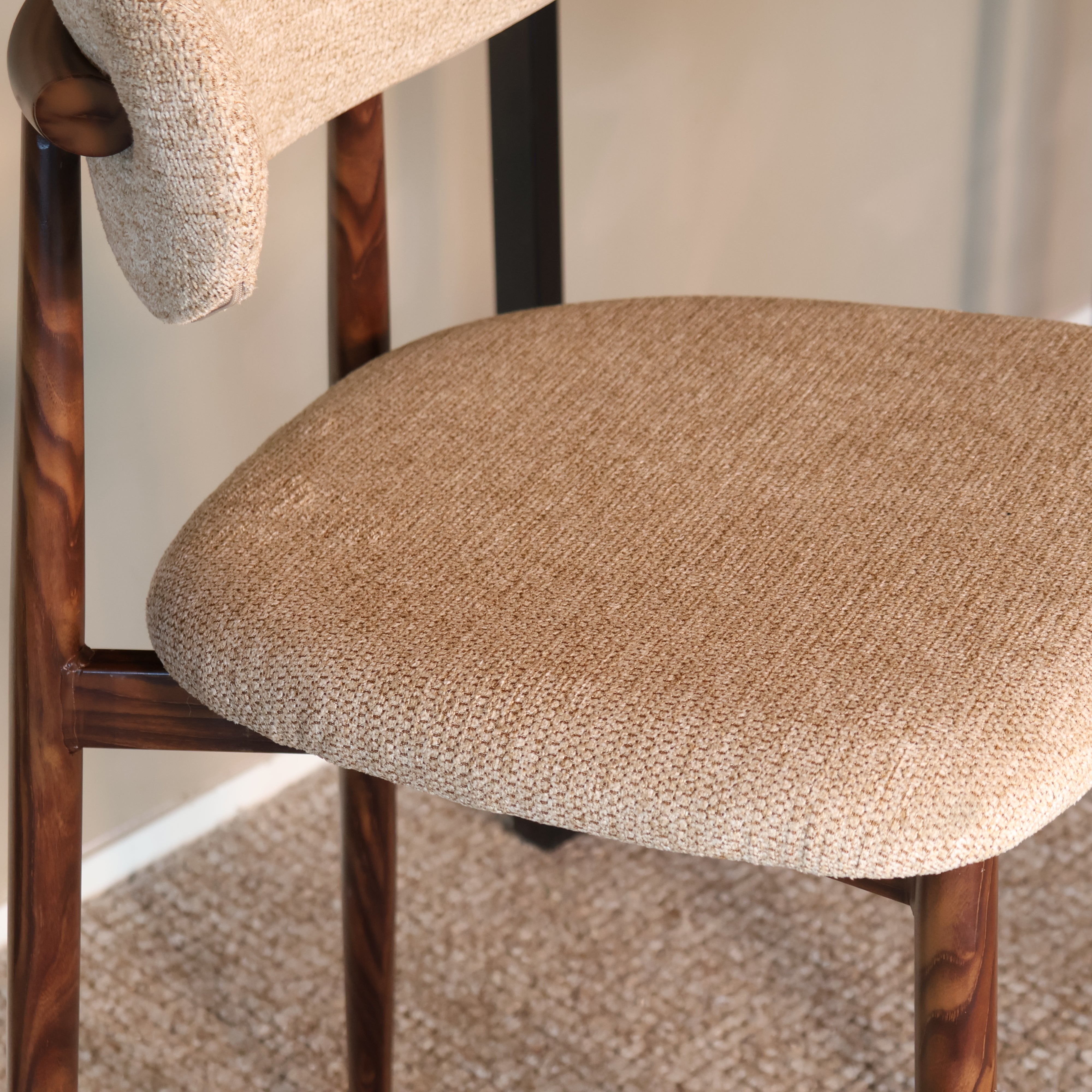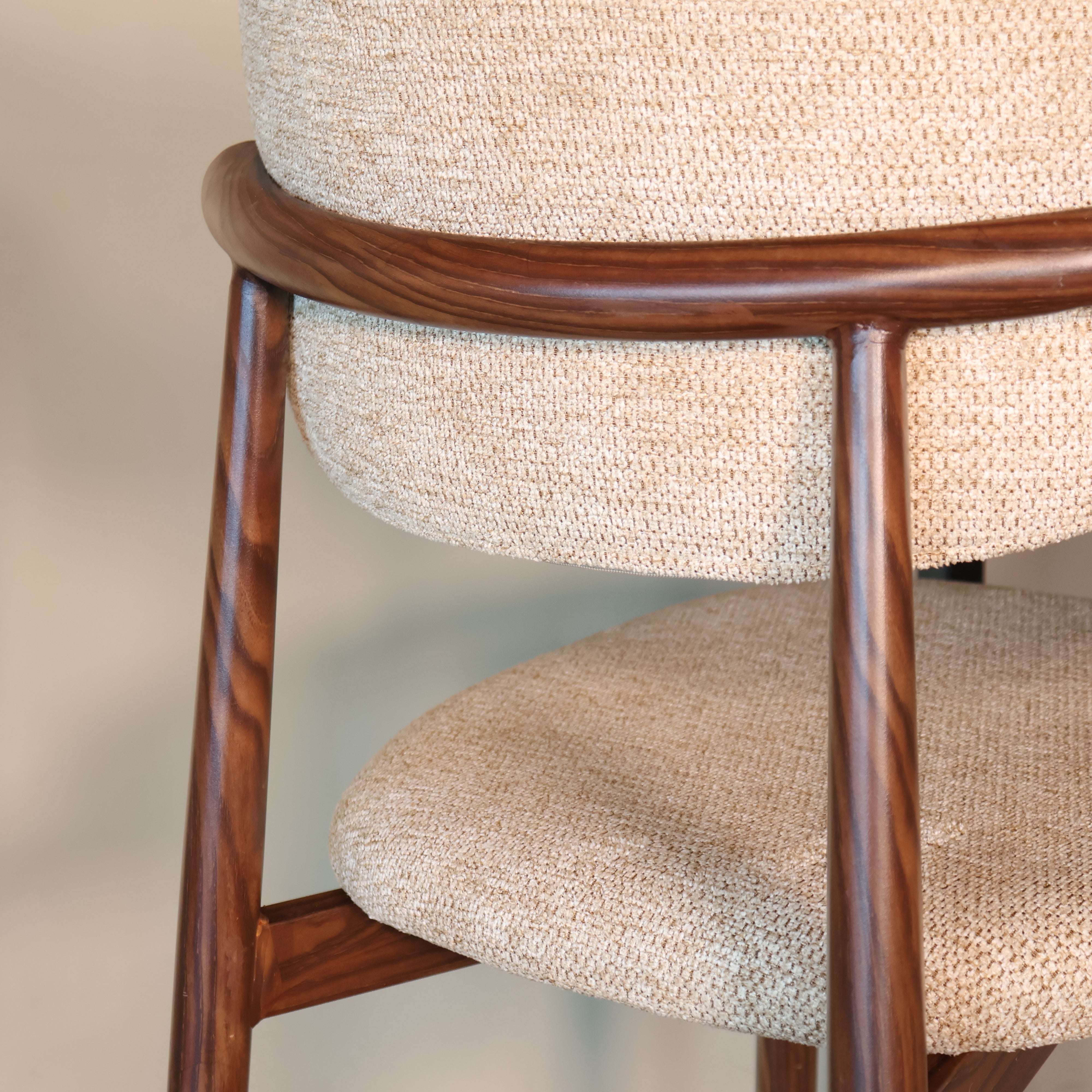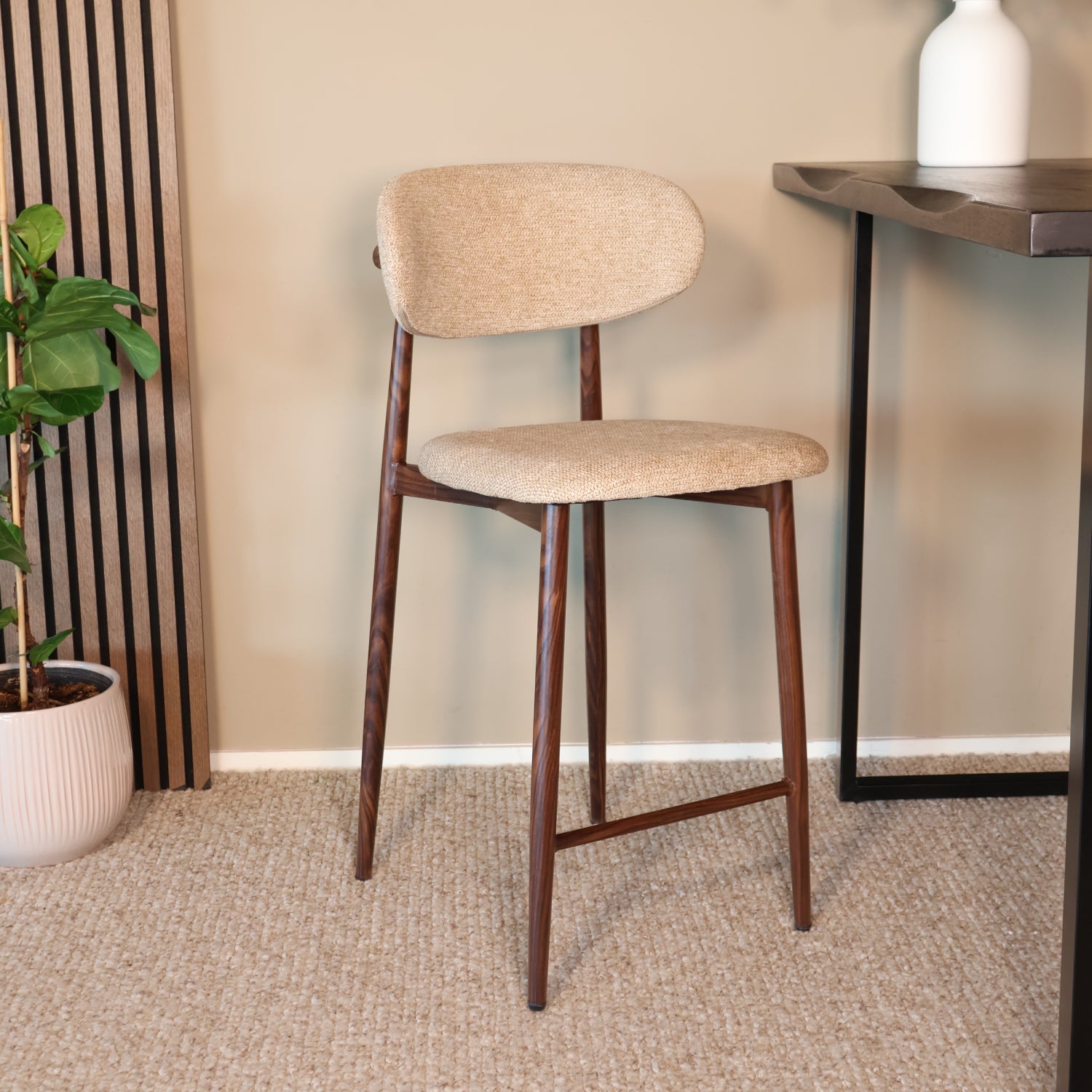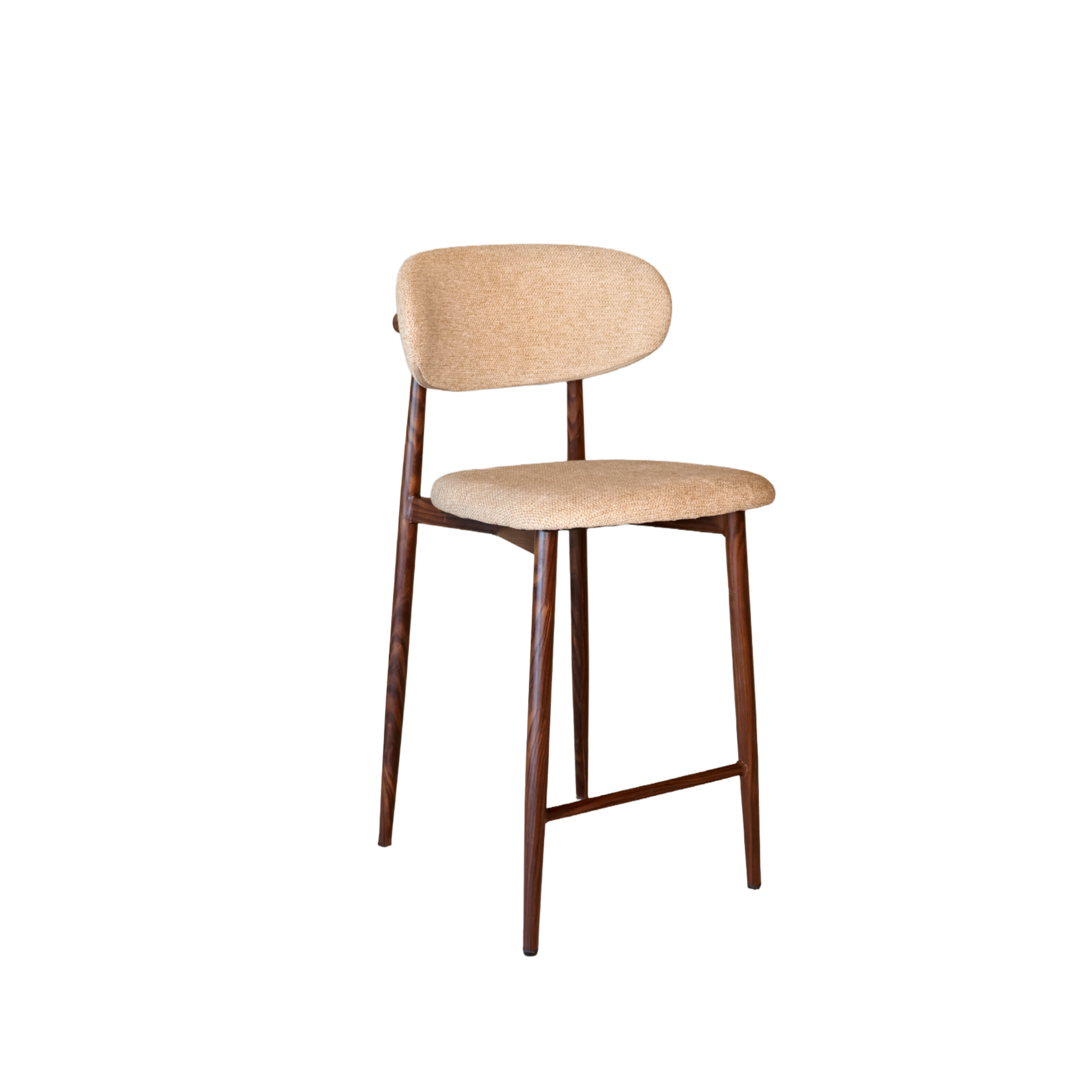 Breng rust, warmte en elegantie in huis met deze barkruk in verfijnde Japandi-stijl. De combinatie van een zachte stoffen zitting en een natuurlijk houtlook onderstel zorgt voor een harmonieuze balans tussen modern comfort en minimalistisch design. Perfect voor lange diners, rustige ochtenden aan de bartafel of als stijlvolle accentstoel in je keuken.