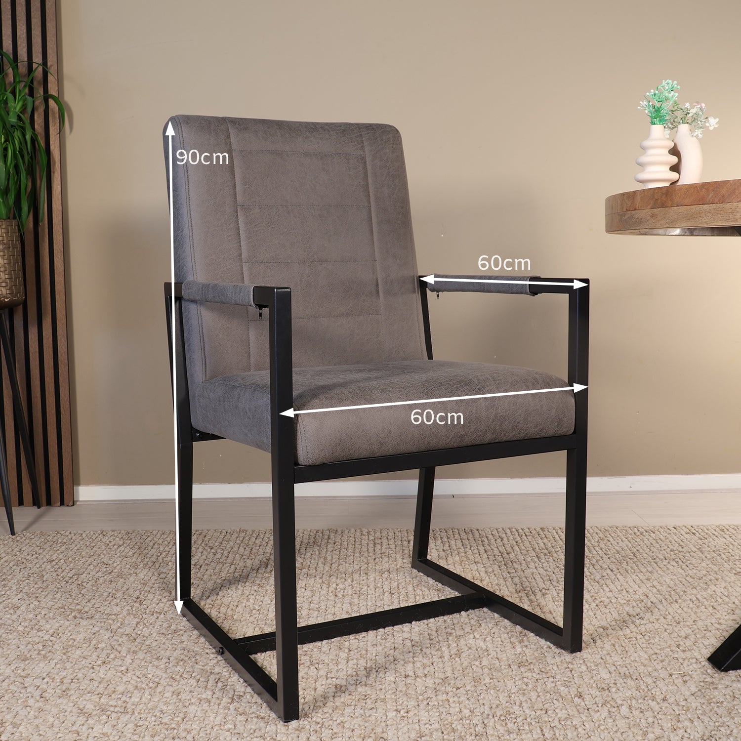 Elegant, comfortabel en functioneel – deze eetkamerstoel met armleuningen brengt moeiteloos stijl in je eetkamer. De zachte microvezel bekleding voelt aan als suède en zorgt voor een warme uitstraling, terwijl het zwarte metalen frame een stoer industrieel accent toevoegt. Perfect voor lange avonden aan tafel of om extra flair toe te voegen aan je interieur.