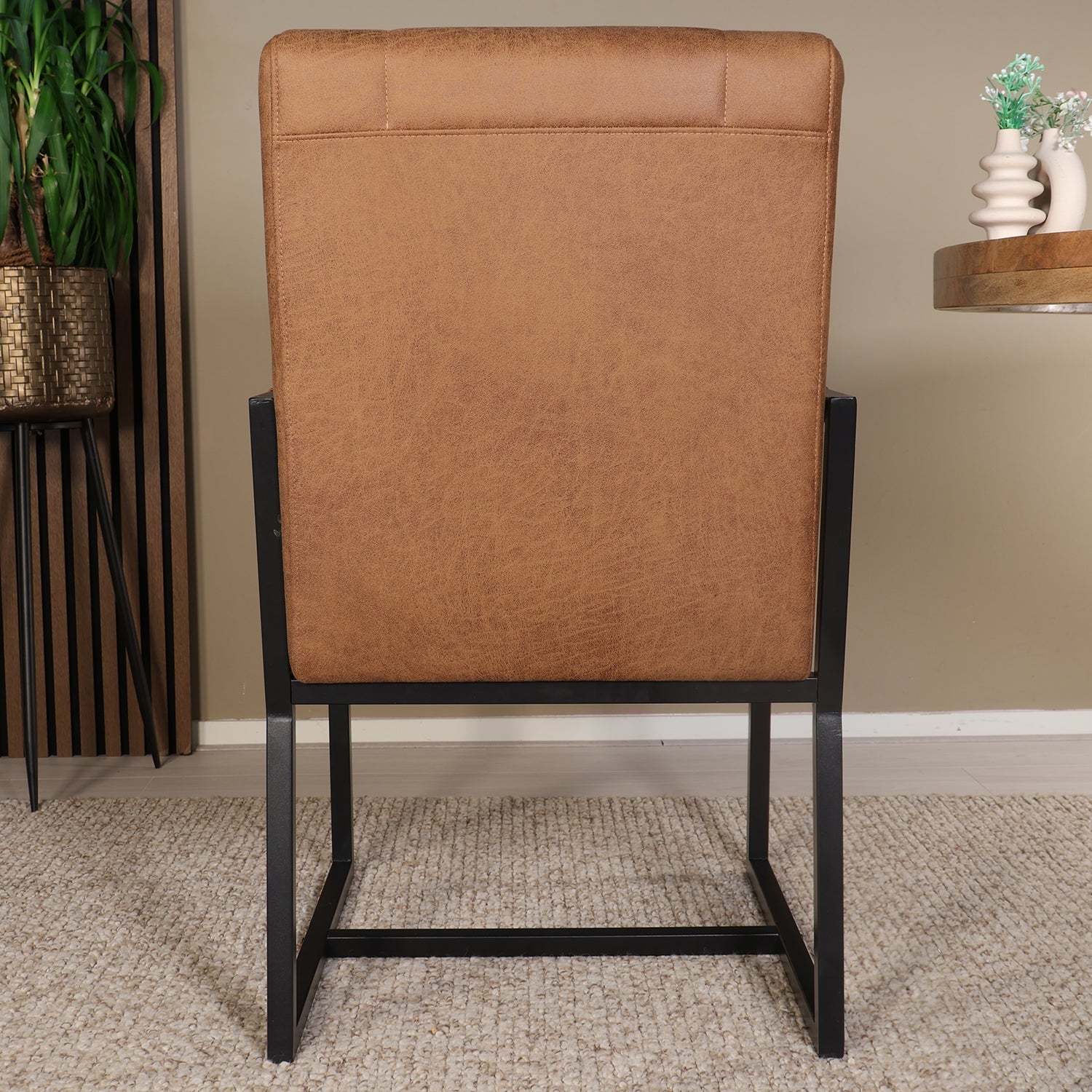 Elegant, comfortabel en functioneel – deze eetkamerstoel met armleuningen brengt moeiteloos stijl in je eetkamer. De zachte microvezel bekleding voelt aan als suède en zorgt voor een warme uitstraling, terwijl het zwarte metalen frame een stoer industrieel accent toevoegt. Perfect voor lange avonden aan tafel of om extra flair toe te voegen aan je interieur.