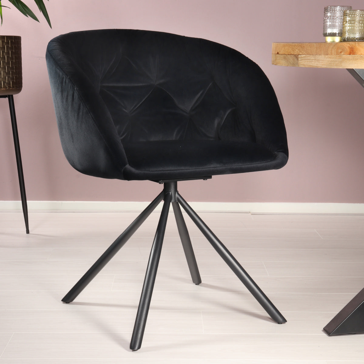 SET DEAL 4 stuks: Eetkamerstoel draaibaar zwart velvet Tamara