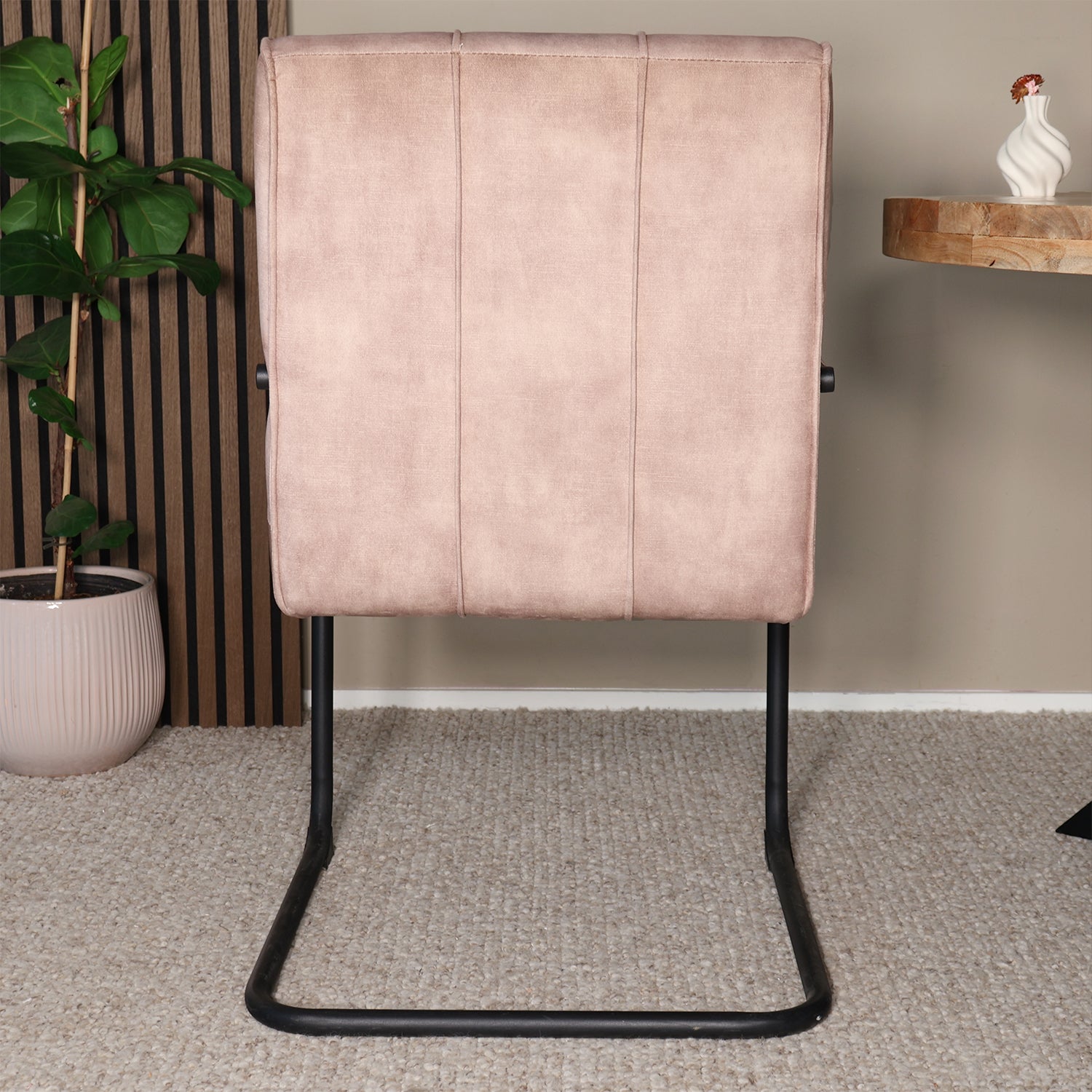 Stoer, comfortabel en stijlvol – deze eetkamerstoel met armleuningen brengt karakter aan iedere eethoek. De velvet bekleding voelt zacht aan en heeft een subtiel geblokt patroon, terwijl het zwarte metalen frame zorgt voor een robuuste industriële touch. Ideaal voor lange diners, gezellige avonden en sfeervolle momenten aan tafel.