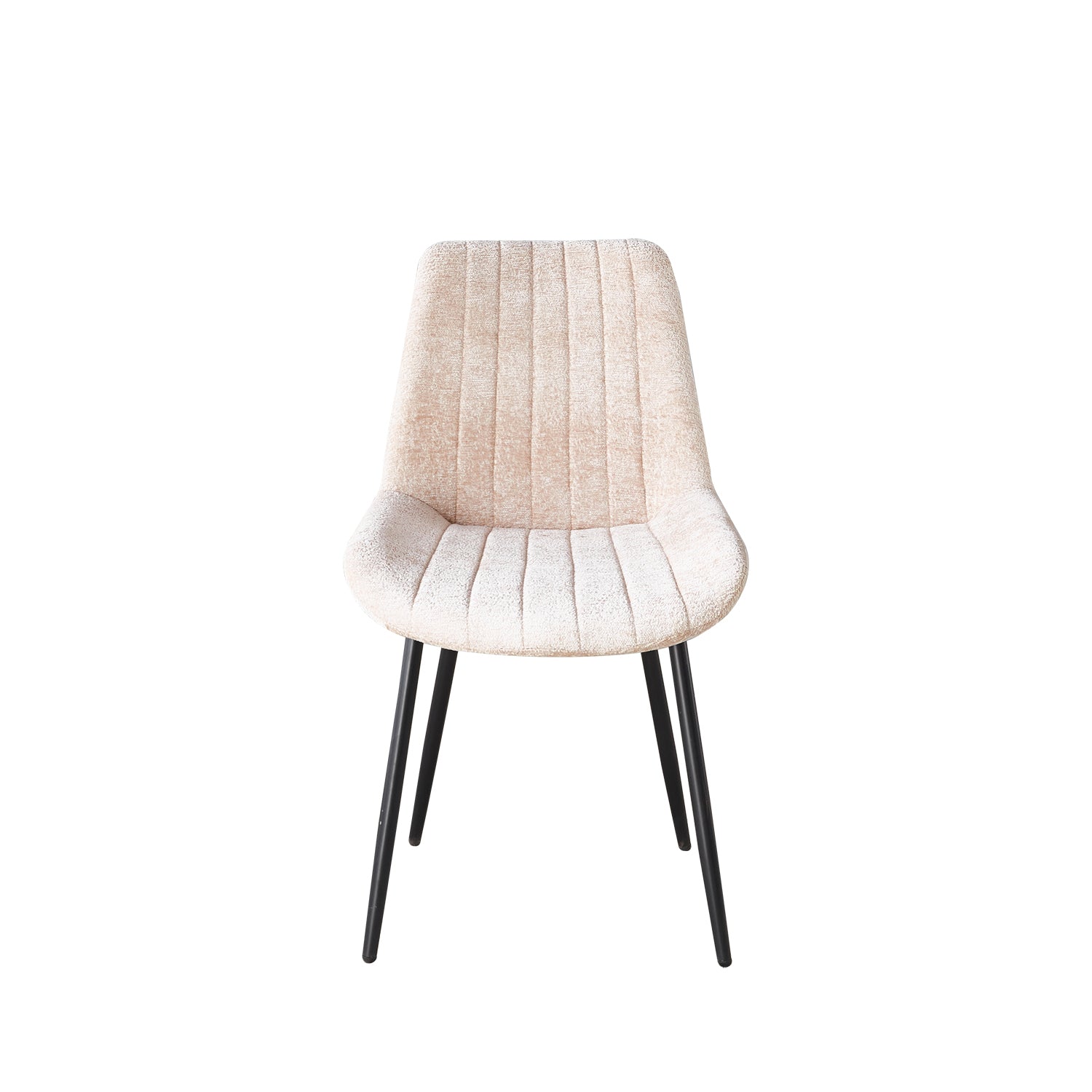 Laat je eethoek stralen met deze moderne chenille eetkamerstoel. De fluweelzachte bekleding en het zwarte metalen onderstel vormen samen een stijlvolle mix van elegantie en stoer design. Dankzij de ronde vormen en comfortabele zitting is deze stoel perfect voor lange diners of gezellige avonden aan tafel.