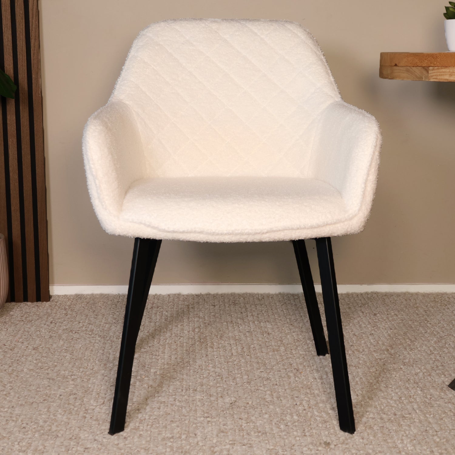 Maak jouw eethoek extra uitnodigend met deze moderne teddy eetkamerstoel. De zachte, fluffy bekleding straalt warmte uit, terwijl het metalen onderstel zorgt voor een stoer contrast. Een perfecte mix van comfort en design – ideaal voor lange diners of gezellige borrelavonden.