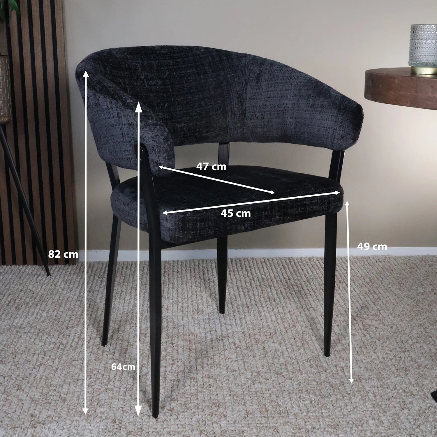 SET DEAL: 6 Eetkamerstoelen Japandi zwart chenille Ziva