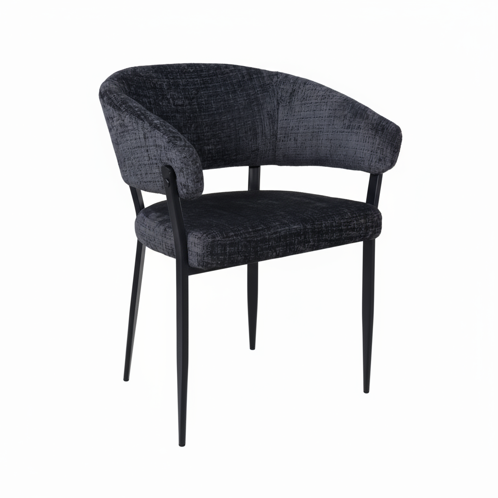 Laat rust en comfort samenkomen met deze stijlvolle eetkamerstoel in minimalistische Japandi-stijl. De combinatie van zachte stof en een strak metalen onderstel creëert een kalme, tijdloze uitstraling die past in elk interieur. Dankzij de ronde rugleuning geniet je van optimale ondersteuning tijdens lange diners of gezellige momenten aan tafel.