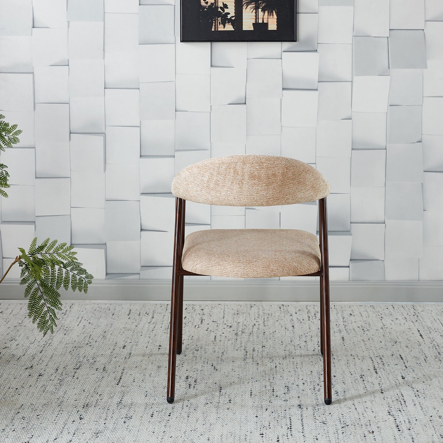 Laat stijl en comfort samenkomen met deze minimalistische eetkamerstoel in Japandi-stijl. De combinatie van geweven stof en een houtlook onderstel creëert een strakke, karakteristieke uitstraling die past in ieder interieur. Dankzij de rondlopende rugleuning geniet je van optimale ondersteuning tijdens gezellige diners of knusse momenten aan tafel.