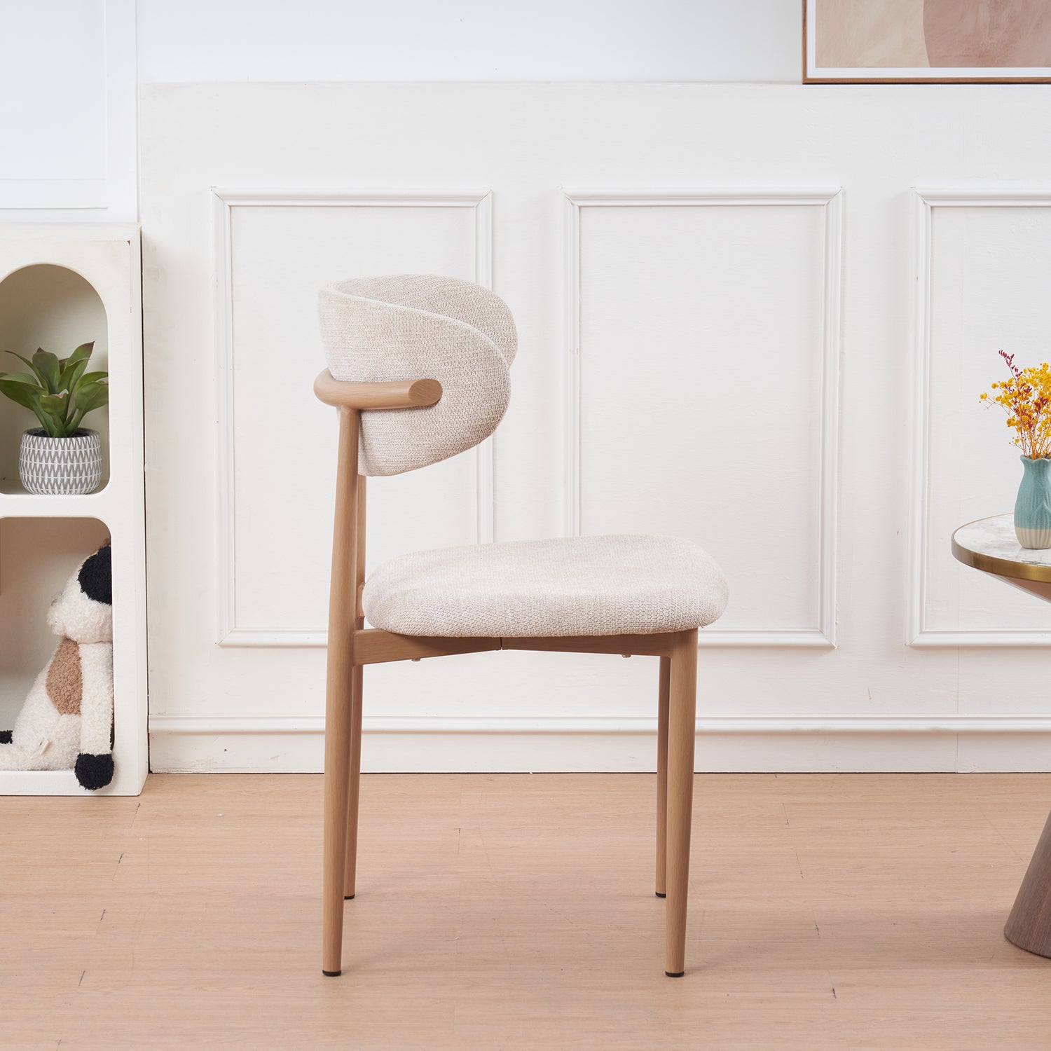 De stijlvolle eetkamerstoel in Japandi stijl is een prachtige toevoeging aan jouw interieur. De stoel is minimalistisch én comfortabel: door de zachte zitting kun je heerlijk lang tafelen. Dankzij het rustige design met natuurlijke invloeden past de stoel perfect in een Japandi interieur. Gebruik de Reika als eetkamerstoel of plaats hem in jouw woon- of studeerkamer voor een sfeervolle uitstraling.