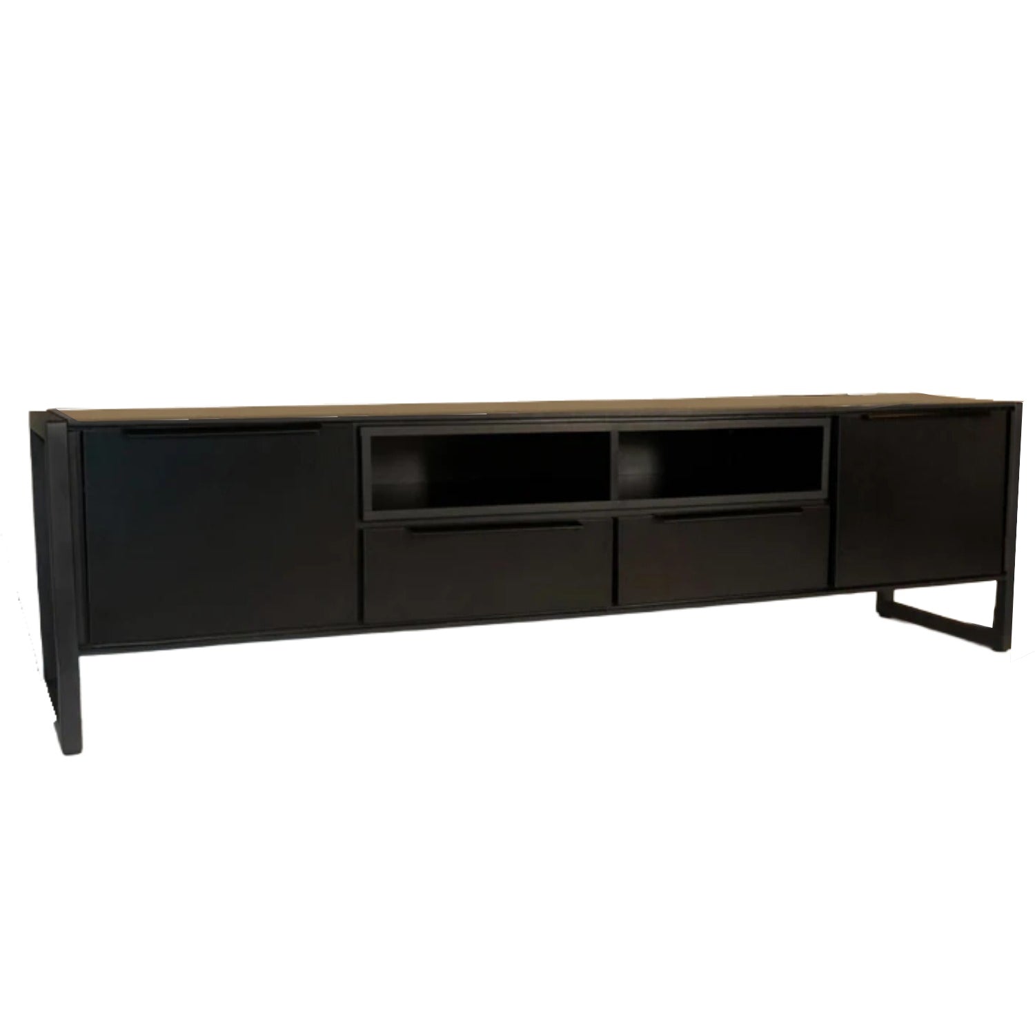 Het tv-meubel Madison is voorzien van twee deuren en twee lades waar je diverse spullen in of achter kan leggen om ze uit het zicht maar toch binnen handbereik te hebben. Denk hierbij bijvoorbeeld aan de opladers van je telefoon, de controllers van de gameconsole, gezelschapsspelletjes of andere spullen! Bovenop het tv meubel kun jij natuurlijk je tv kwijt, maar als jij deze liever aan de muur hangt heb je hier genoeg ruimte om lekkere geurstokjes, een mooie foto of decoratieve beelden te zetten! In de openingen kun jij dan nog een gameconsole kwijt, het kastje voor je TV of een CD/DVD speler!