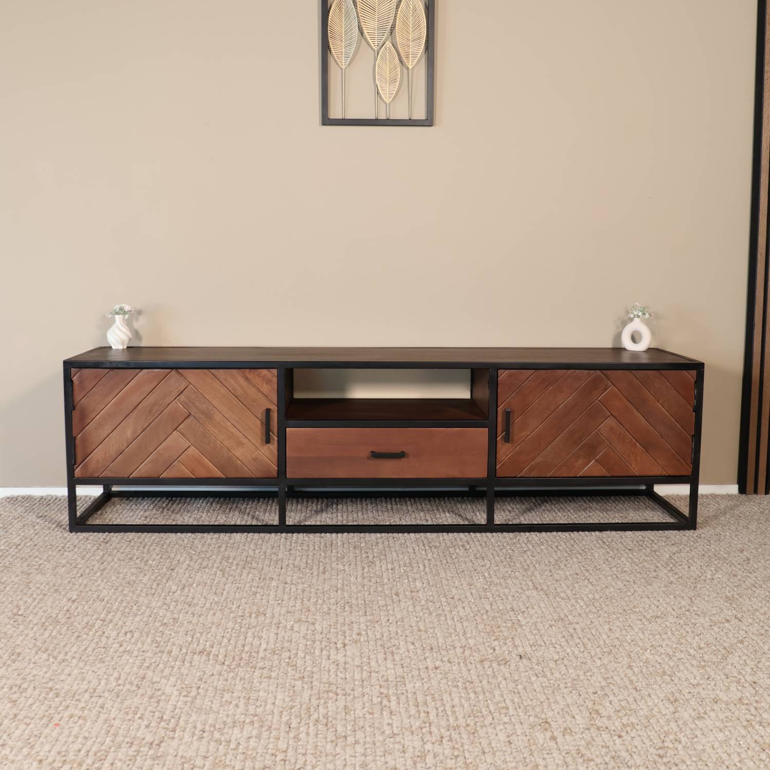 Tv meubel visgraat walnoot mangohout 180cm Danae