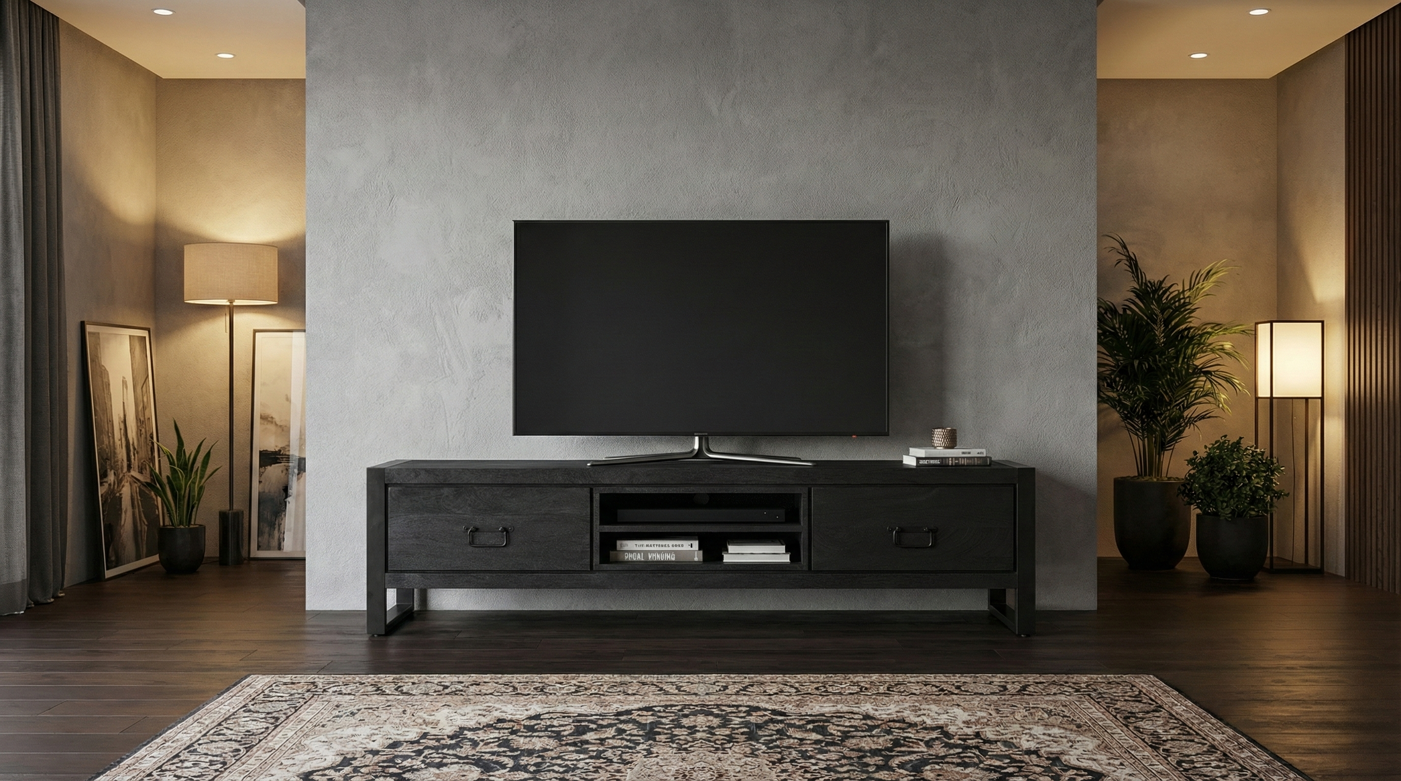 Tv meubel zwart mangohout 160cm Avelyn