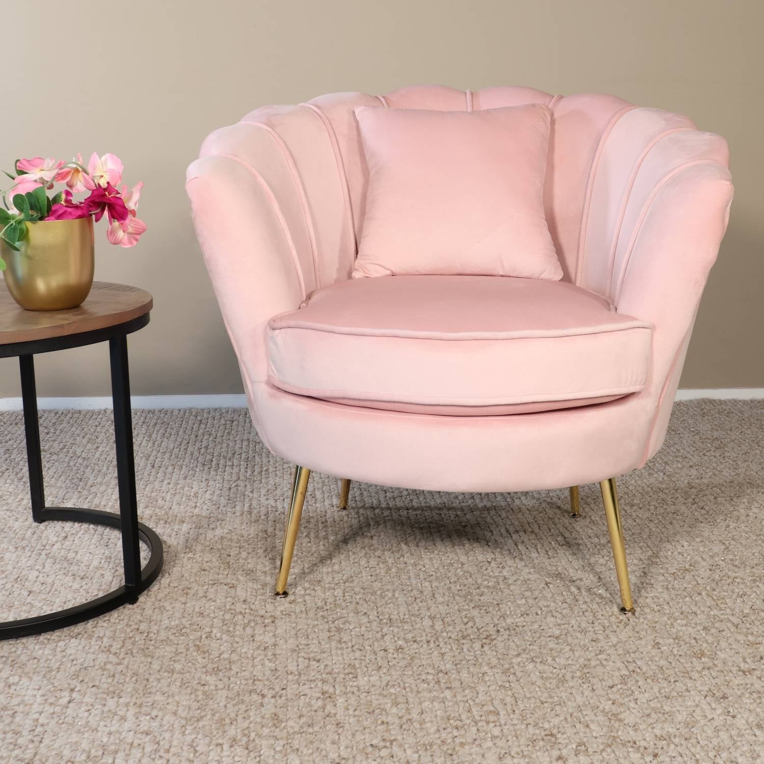 Deze elegante fauteuil met zachte velvet bekleding straalt pure luxe en comfort uit. De zachte stof in combinatie met de goudkleurige metalen poten zorgt voor een stijlvolle, warme uitstraling die moeiteloos in elk interieur past. Perfect om heerlijk in te ontspannen met een boek of een kop thee.