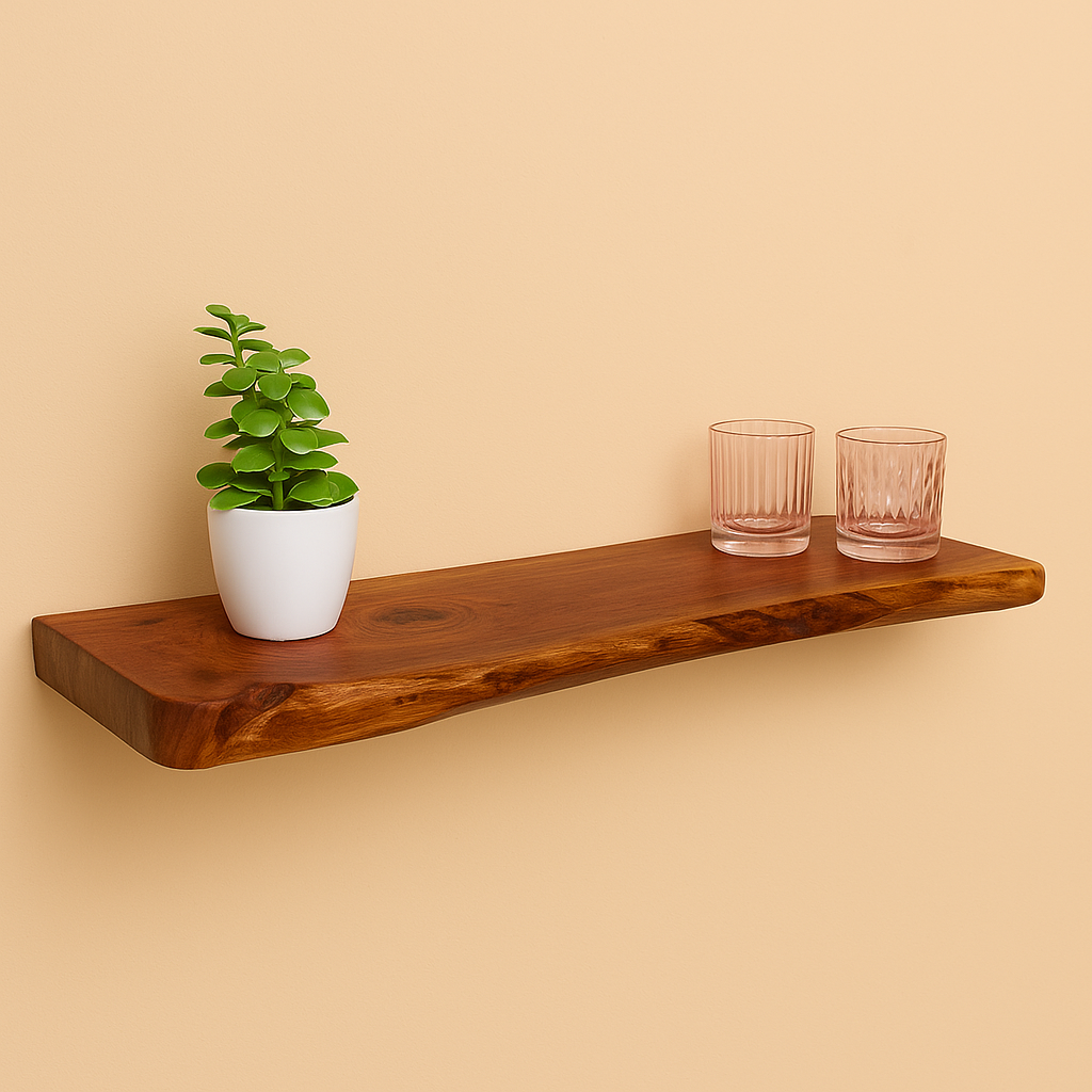 Geef je interieur een stoere en natuurlijke touch met deze stijlvolle wandplank van acaciahout en metaal. Dankzij het tijdloze ontwerp past de plank perfect binnen zowel moderne als industriële woonstijlen. Gebruik hem in de woonkamer, keuken, slaapkamer of zelfs het toilet om je favoriete decoratie-items tentoon te stellen. Combineer meerdere planken op verschillende hoogtes voor een speels en uniek effect. Een praktische én decoratieve toevoeging die sfeer brengt aan elke muur.